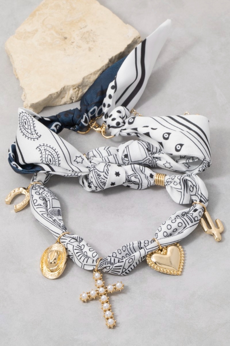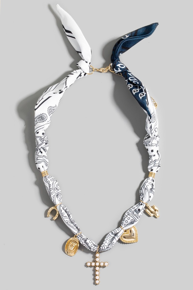 Mixed Charms Blue Paisley Bandana Necklace