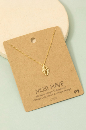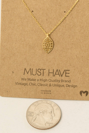 - This trending necklace brings a unique evil eye cut out pendant necklace style. Experience a subtle blend of modernity and classic charm as this trending necklace effortlessly adorns your ensemble.
