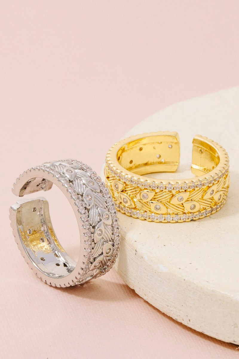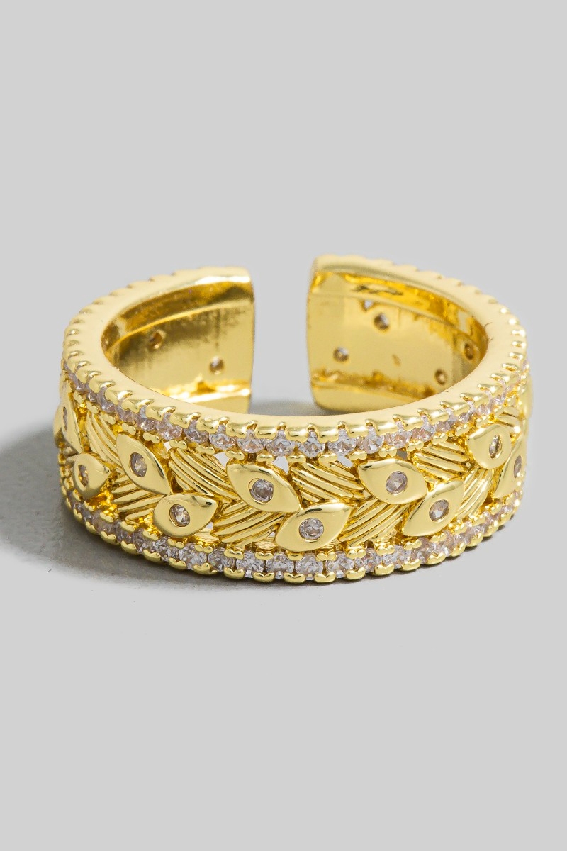 • This ring brings a unique rhinestone trim evil eye band style. Celebrate the art of accessorizing with this piece that effortlessly encapsulates modern trends.