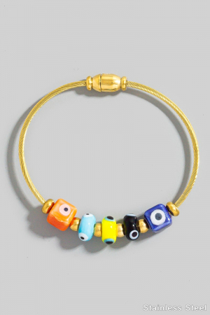 Stainless Steel Cord Assorted Evil Eye Blocks Bracelet