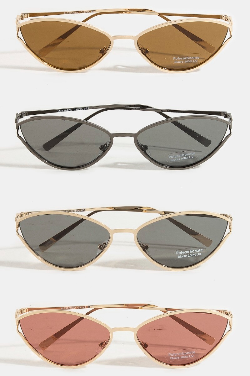 • This set of sunglasses adds a modern metallic rim frame cat eye sunglasses set style. Redefine your look effortlessly with this standout, on-trend piece.