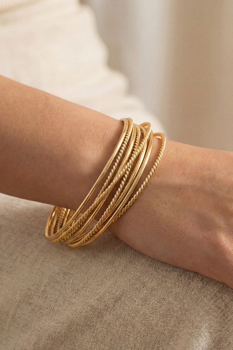 - This bangle bracelet brings a luxurious mixed dainty metallic s set style. Immerse yourself in the world of understated glamour as this bangle bracelet effortlessly exudes timeless appeal.