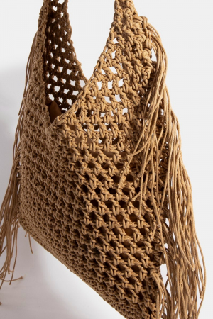 • Long Fringe Braided Tote Bag