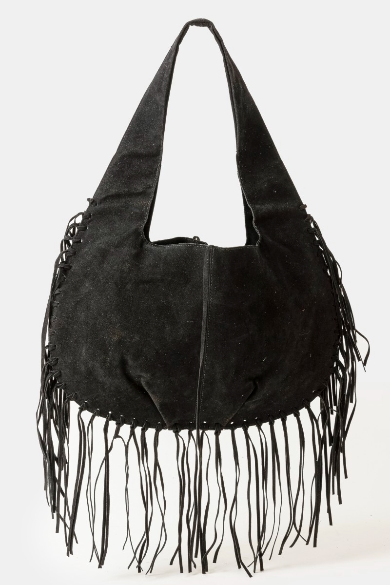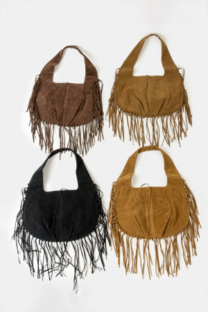 Studded Pattern Multi Fringe Hobo Shoulder Bag