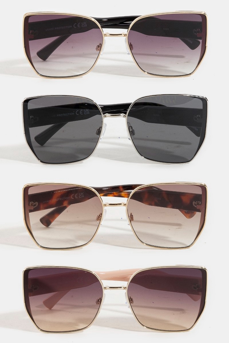 - This set of sunglasses showcases a timeless large square gradient lens sunglasses set style. Experience a subtle blend of modernity and classic charm as this set of sunglasses effortlessly adorns your ensemble.