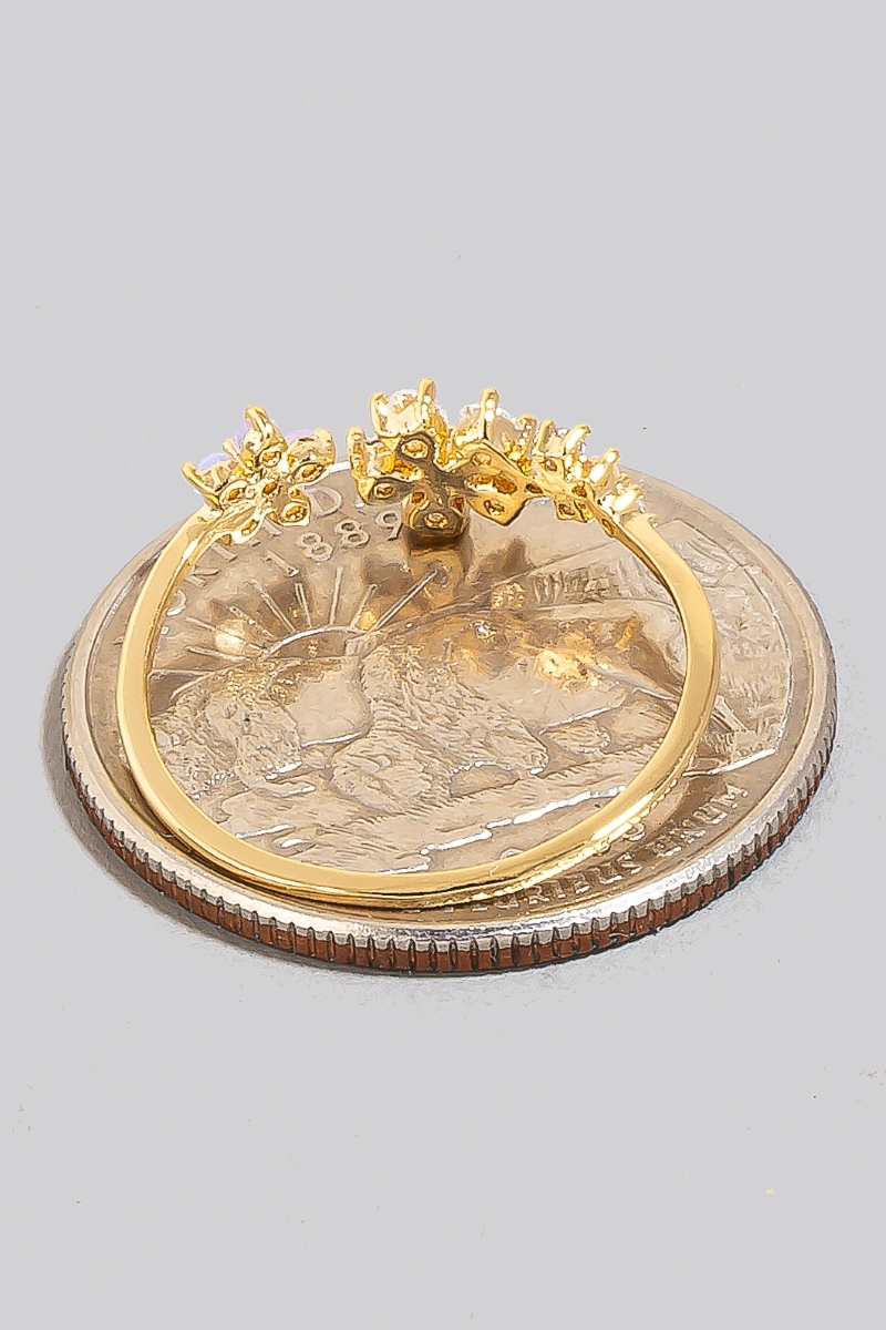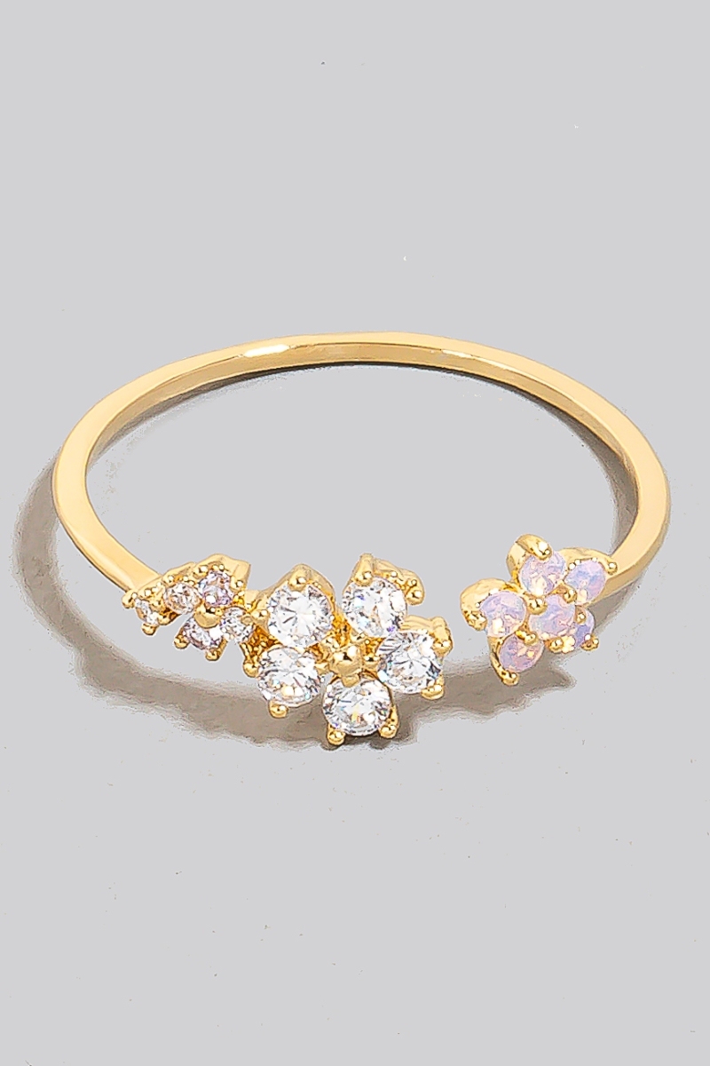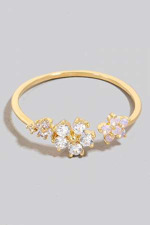 • This ring introduces a unique triple cluster cubic zirconia flowers dainty band style. Elevate your ensemble with this ring that effortlessly captures the essence of refined fashion.