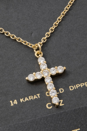 - This pendant necklace brings a luxurious 14k gold dipped cubic zirconia cross style. Witness the transformative power of accessories as this piece effortlessly redefines your fashion narrative.
