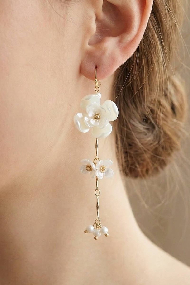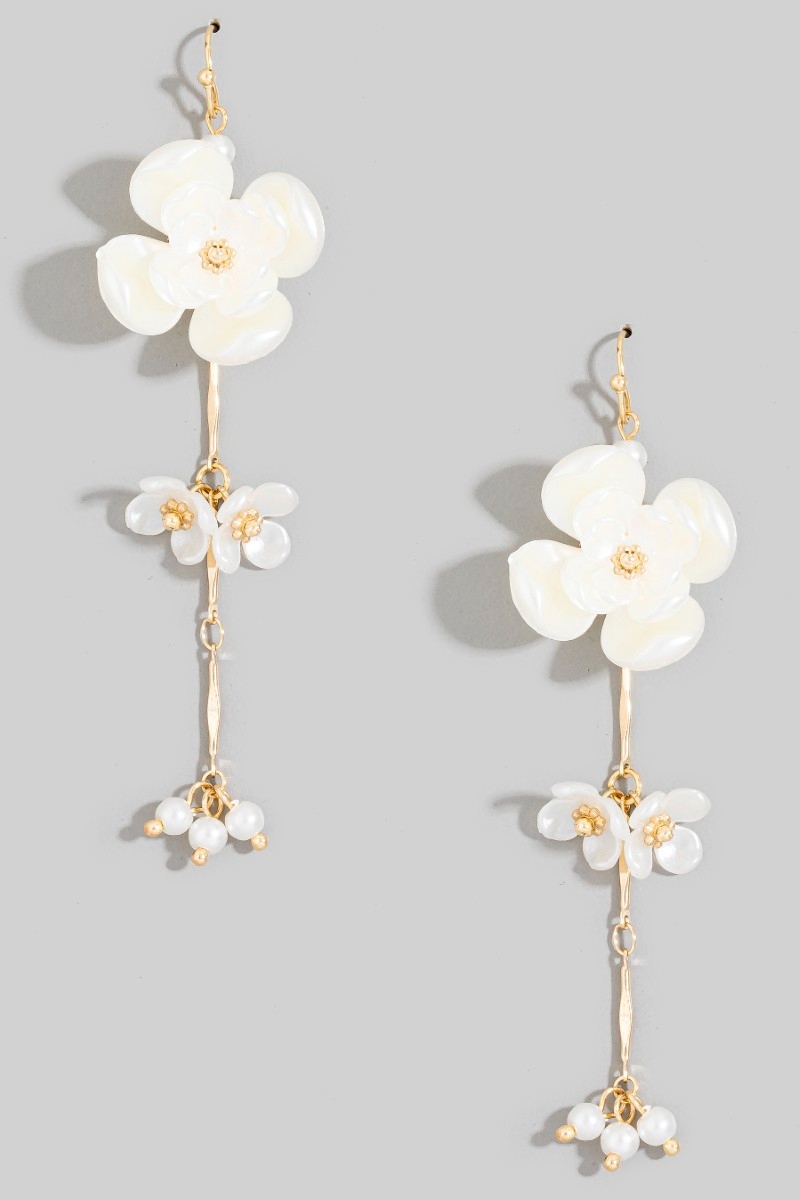 - This pair of dangle earrings introduces a unique acrylic floral chain style. Redefine your look effortlessly with this standout, on-trend piece.