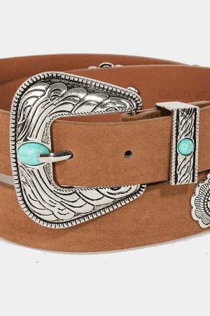 • This belt brings a unique floral concho disc fashion style. Experience a burst of creativity in accessorizing as this piece effortlessly sets the tone for your unique style.