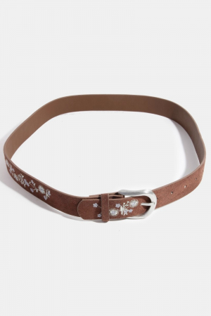 • This belt brings a unique soft floral embroidered style. Savor the craftsmanship that goes beyond the ordinary, as this belt effortlessly captivates attention.