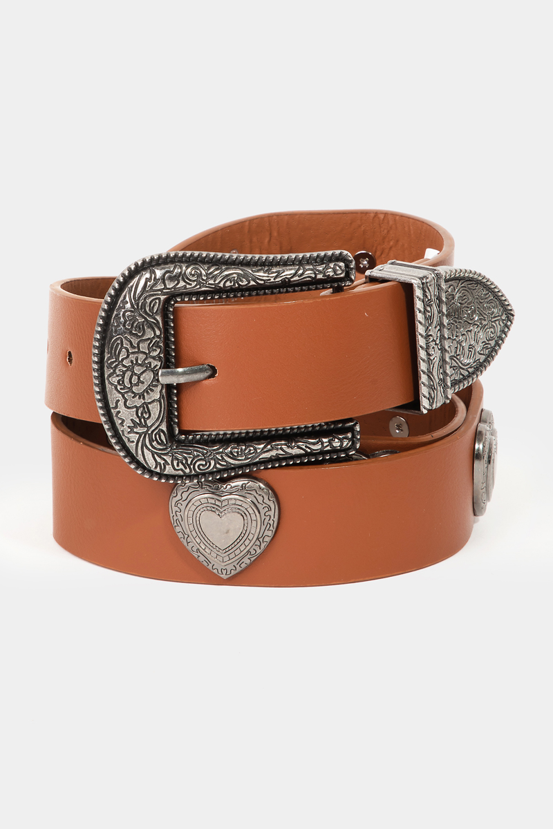 - This faux leather belt brings a luxurious western etched flower heart style. Discover the perfect balance of functionality and fashion.