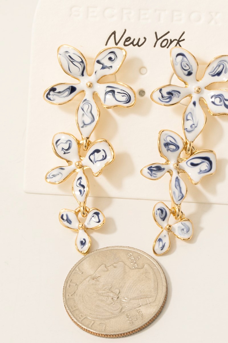 • This pair of dangle earrings displays a vibrant blue ceramic flower link chain style. Experience a subtle blend of modernity and classic charm as this pair of dangle earrings effortlessly adorns your ensemble.