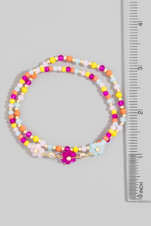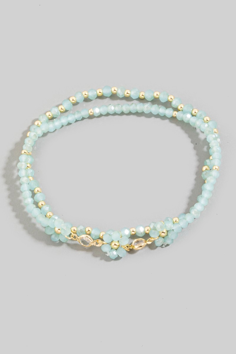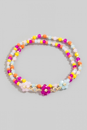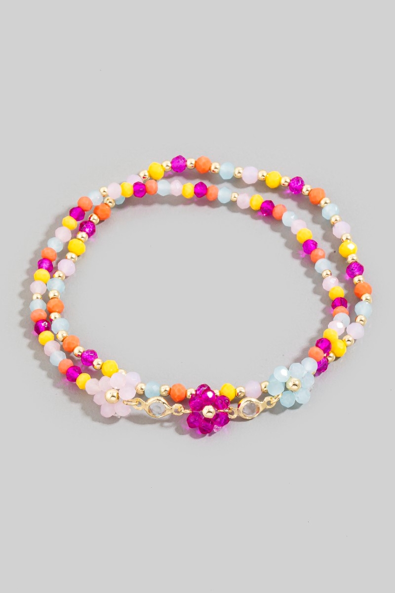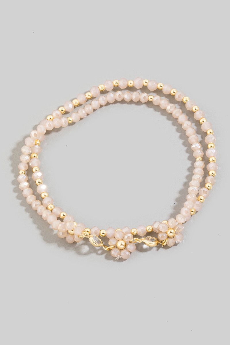 - This bracelet brings a unique faceted beaded flower charm mixed beaded style. Unveil modern elegance with this subtly intricate bracelet.