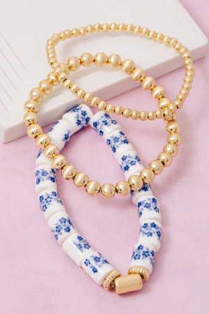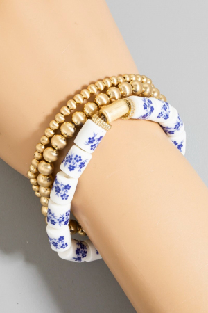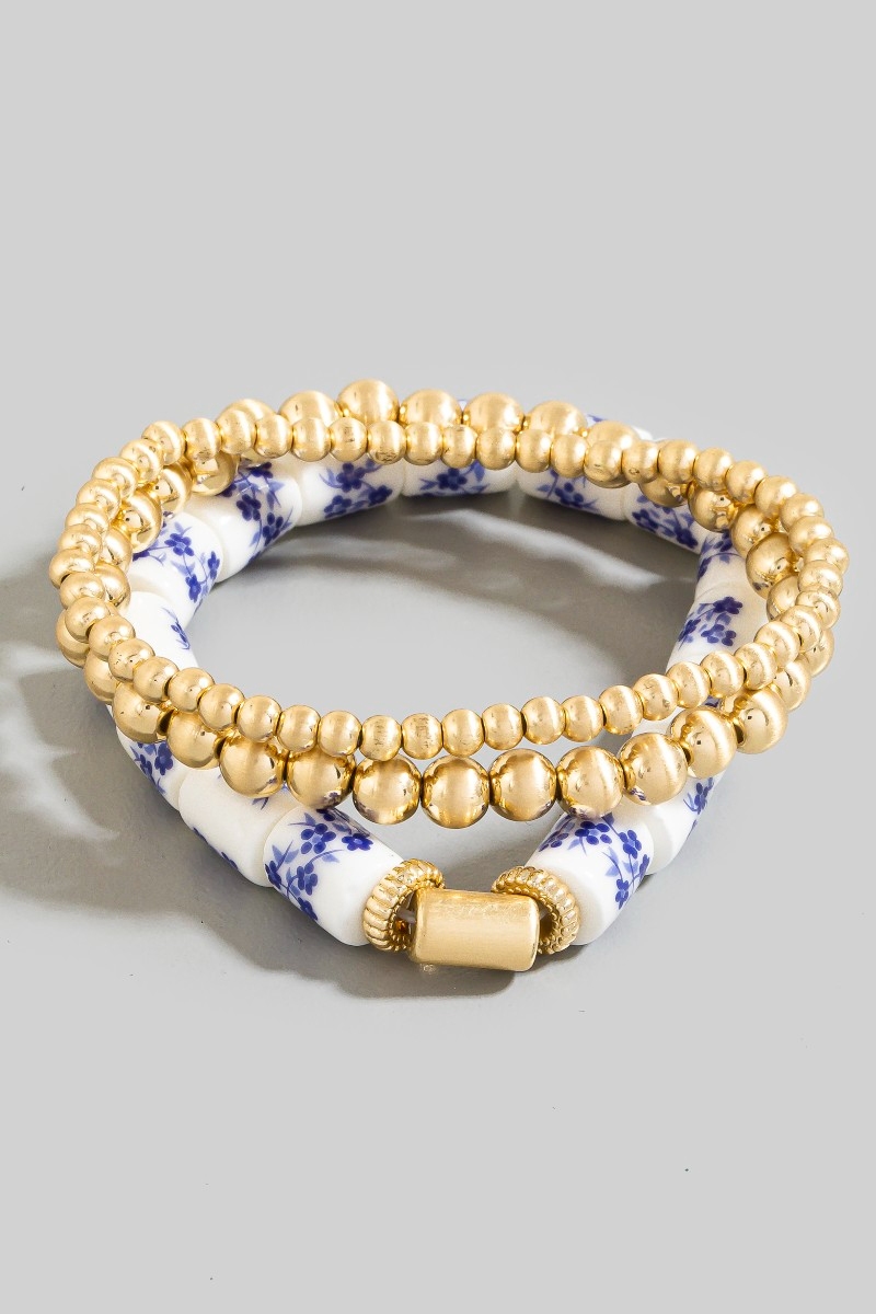 - This bracelet displays a fashionable floral ceramic and metallic beaded set style. Embark on a journey of sartorial refinement as this bracelet effortlessly complements your fashion sense.
