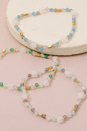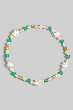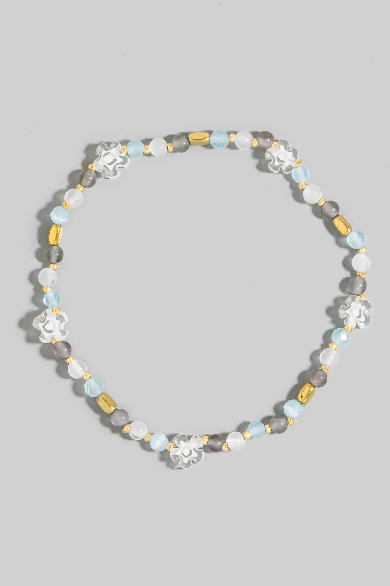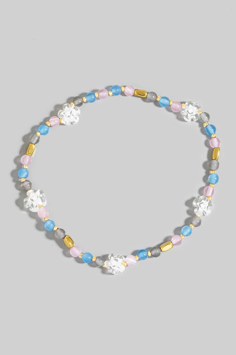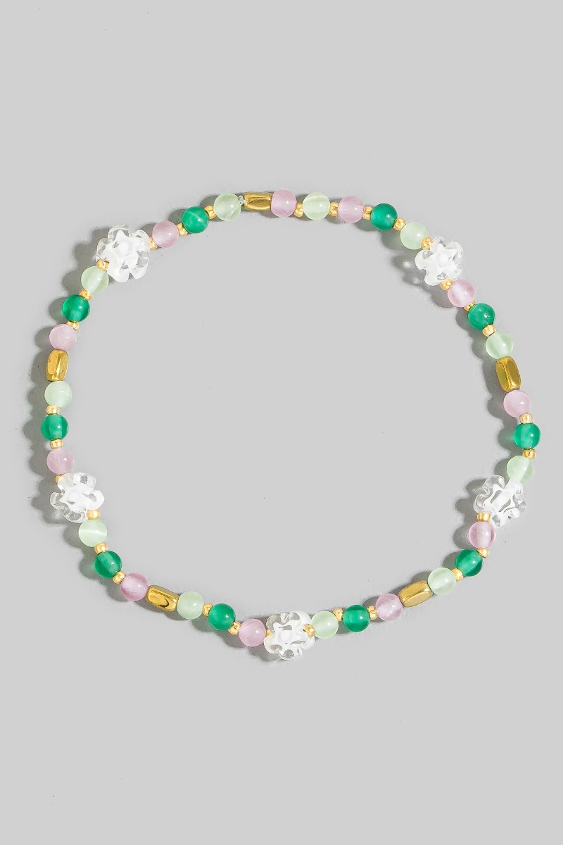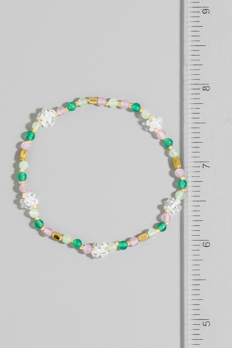 - This bracelet showcases a unique glass beaded flower style. Savor the allure of detailed craftsmanship in this exquisite bracelet.