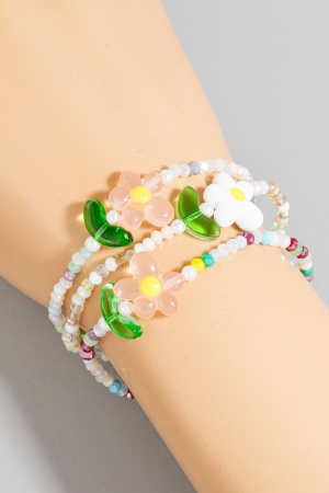 - This bracelet displays a fashionable multi flower beads triple set style. Celebrate individuality with this bracelet that effortlessly expresses your unique sense of style.