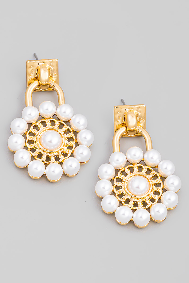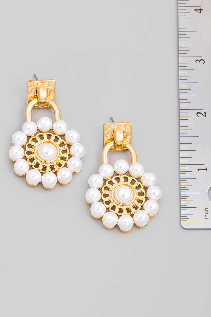 Pearl Center Open Petal Daisy Flower Stud Earrings