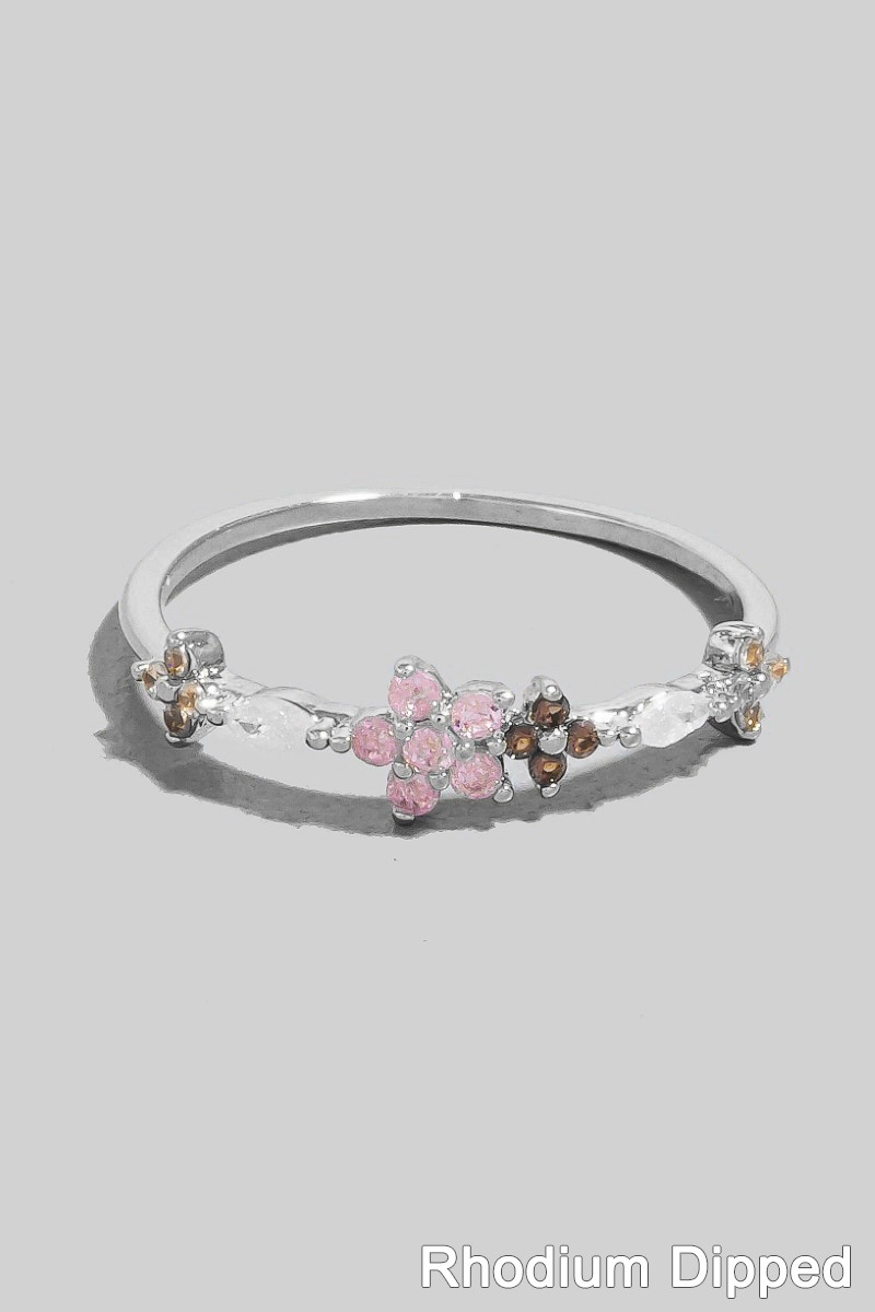 Cz Flower And Leaves Dainty Band Ring