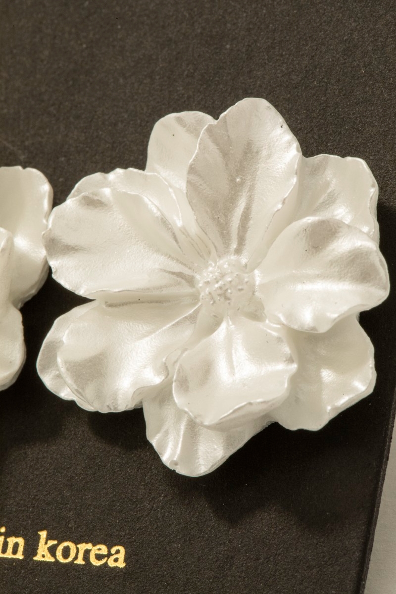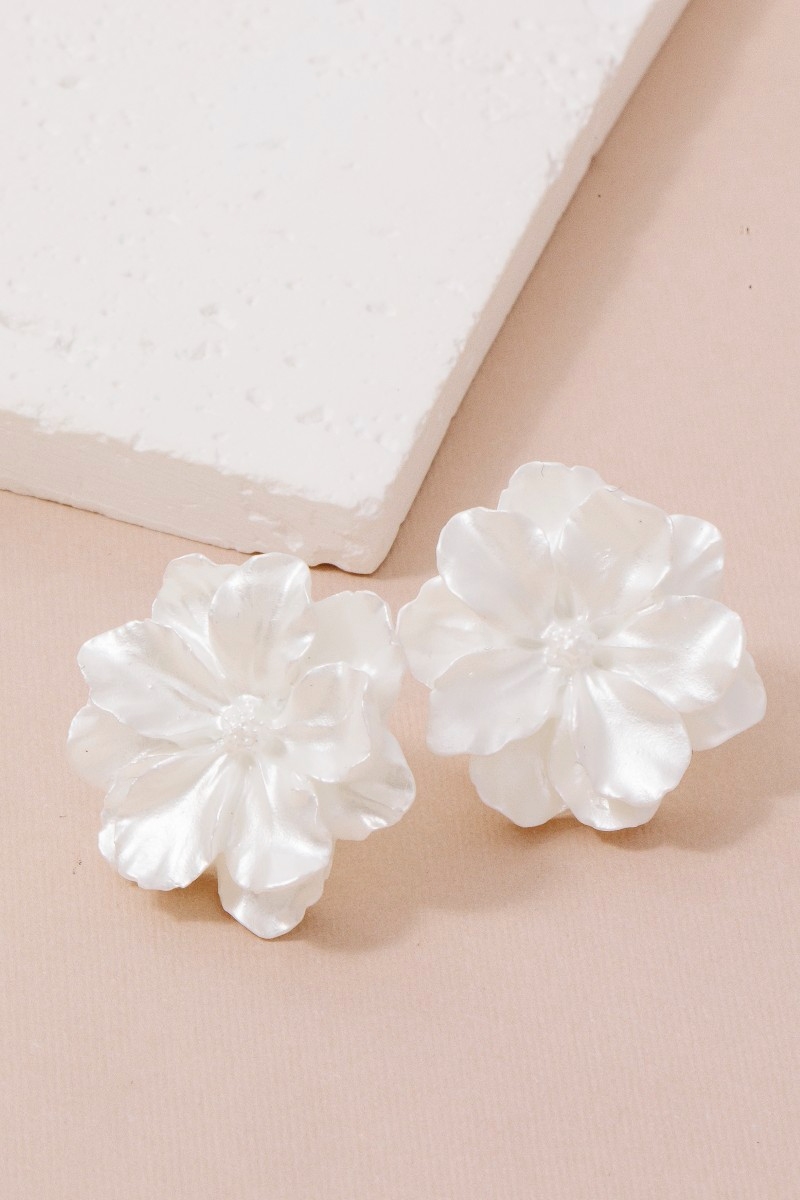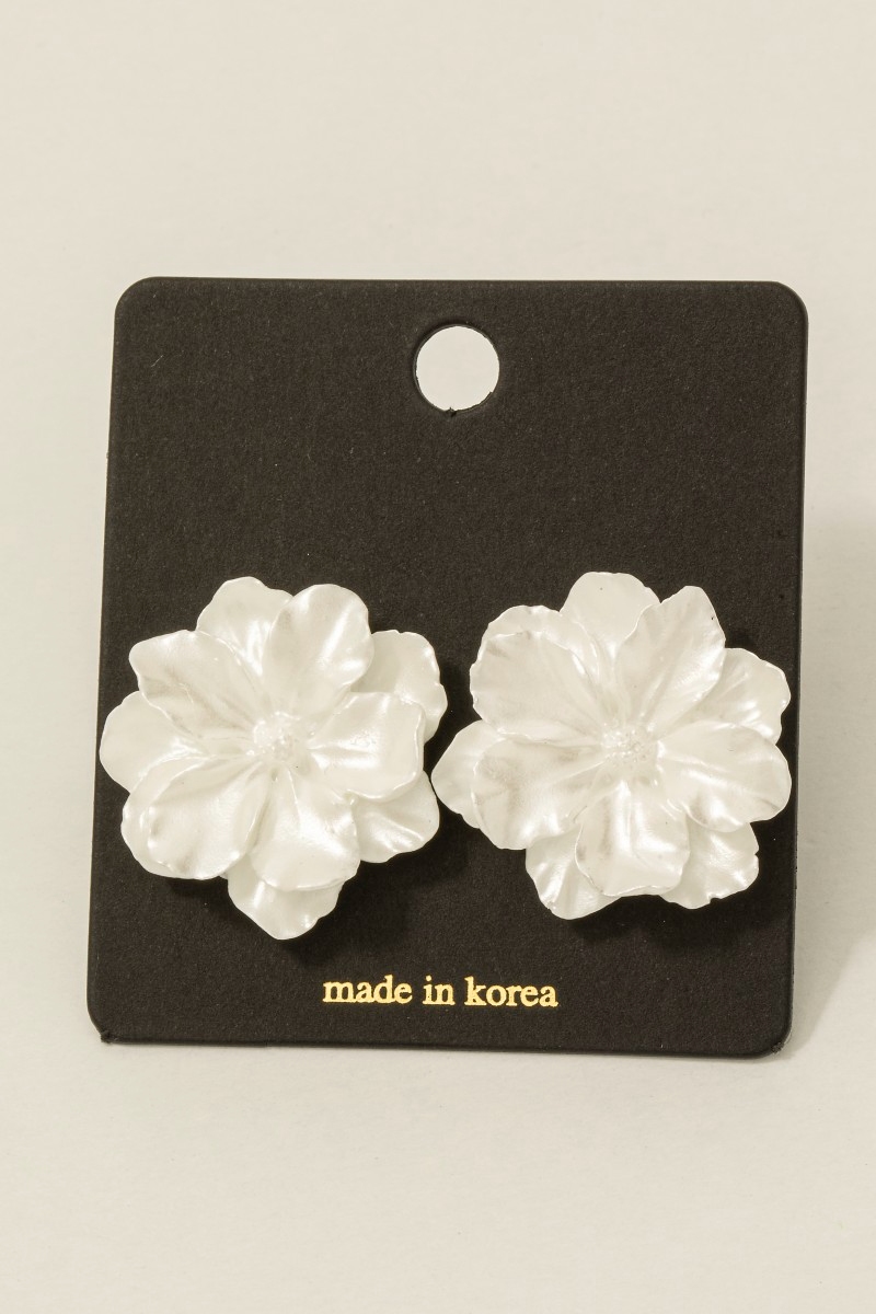 • This pair of stud earrings showcases a unique acrylic flower style. Explore a blend of classic charm and contemporary flair.