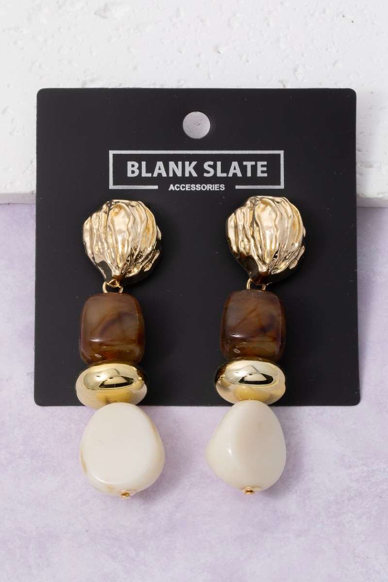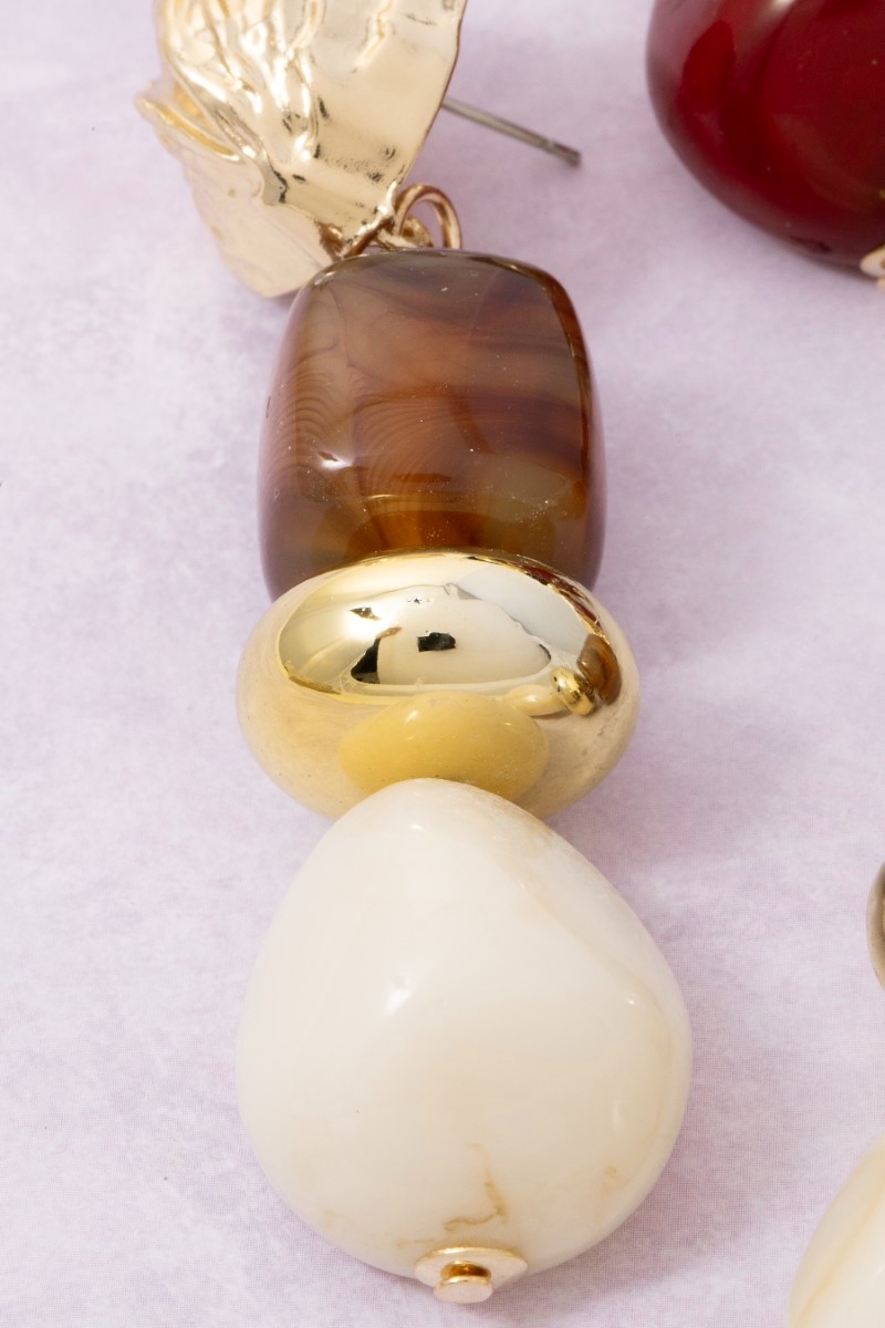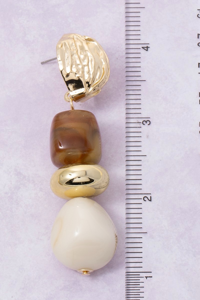- This pair of dangle earrings displays a fashionable chunky metallic and resin beads style. Celebrate the art of accessorizing with this piece that effortlessly encapsulates modern trends.