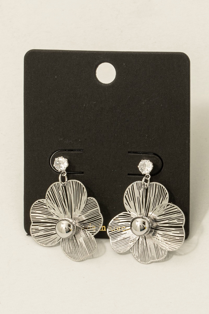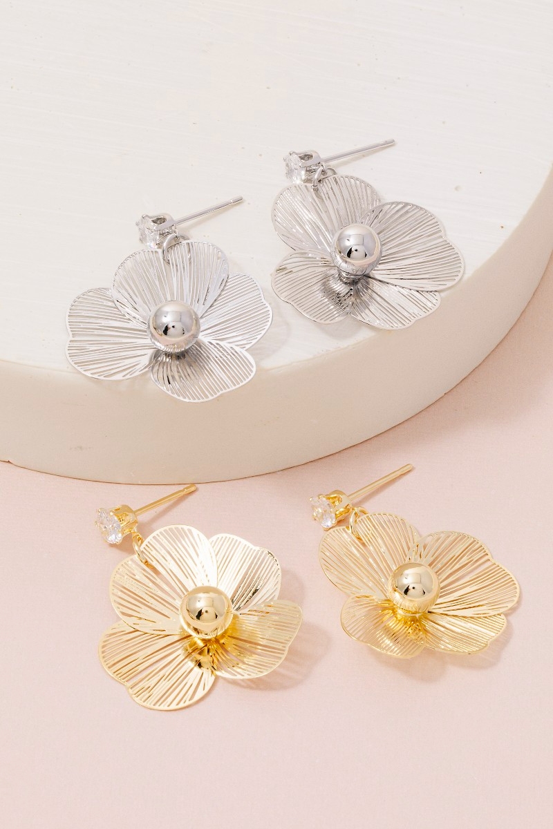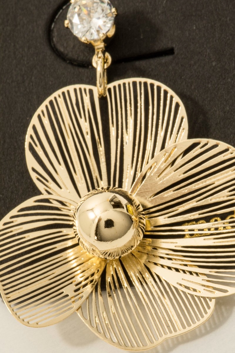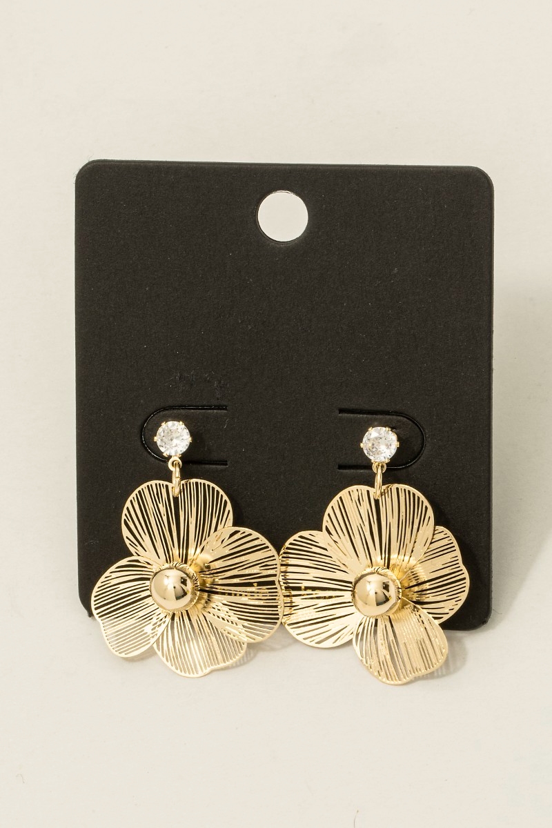 • This pair of drop earrings introduces a unique cz stud golden flower style. Celebrate the art of accessorizing with this piece that effortlessly encapsulates modern trends.