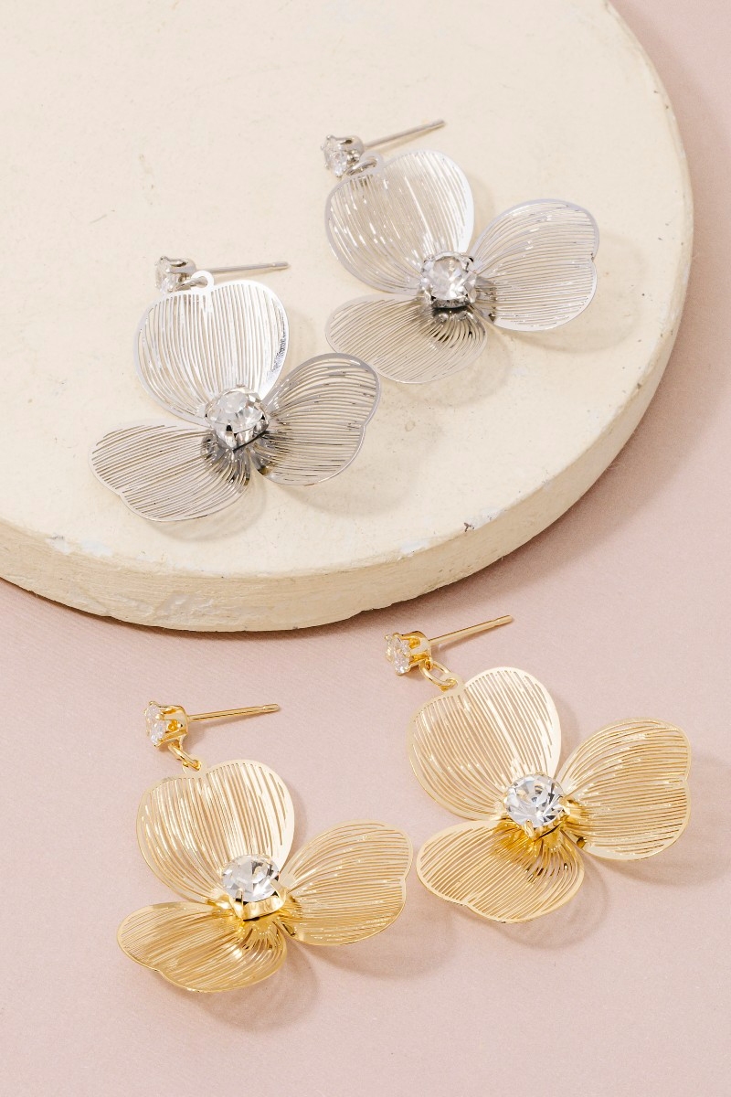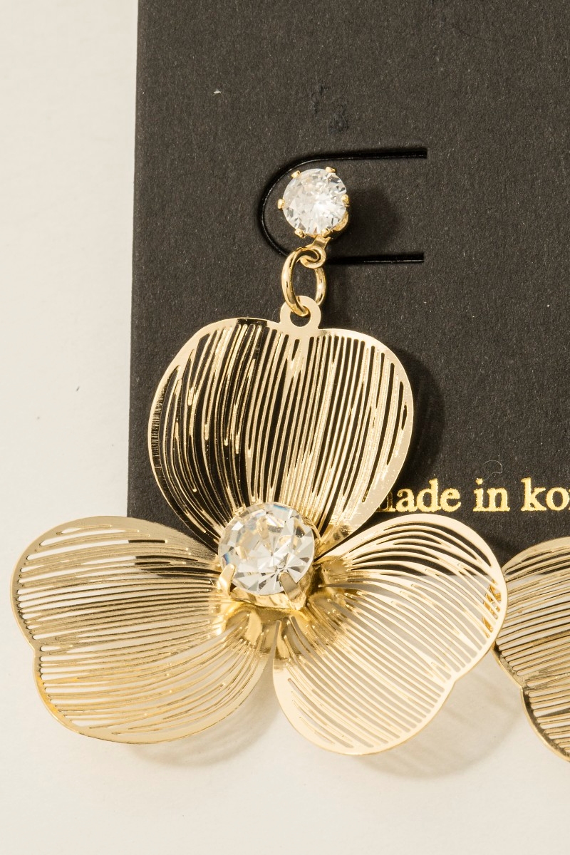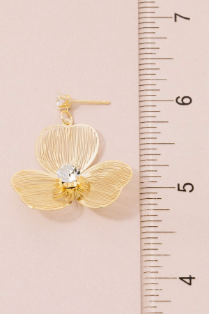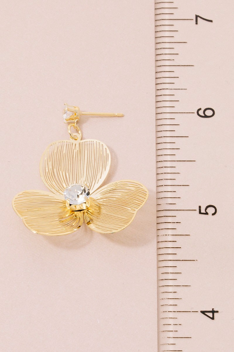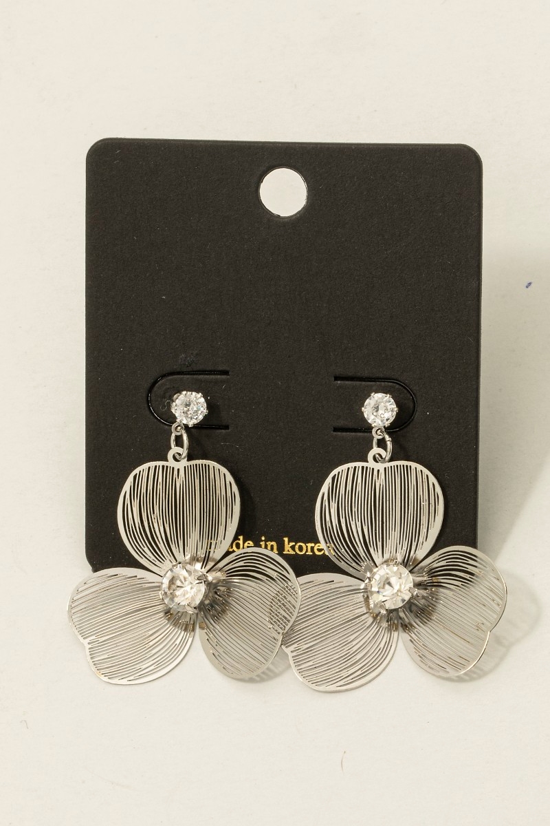 - This pair of drop earrings introduces a unique cz stud three petal style. Immerse yourself in fashion finesse with this statement pair of drop earrings.