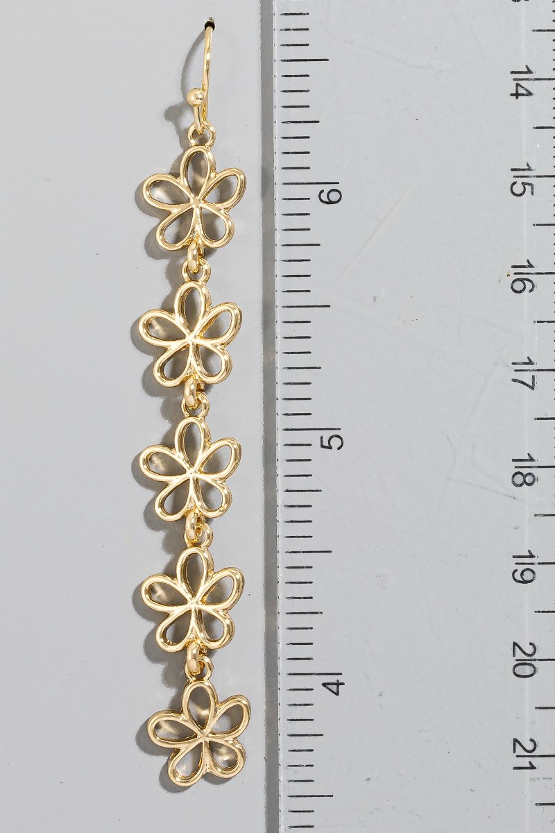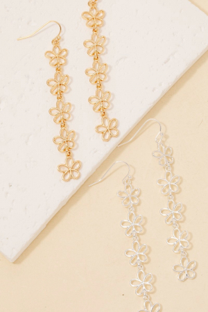 • This pair of dangle earrings adds a modern dainty metallic flower chain style. Savor the allure of detailed craftsmanship in this exquisite pair of dangle earrings.
