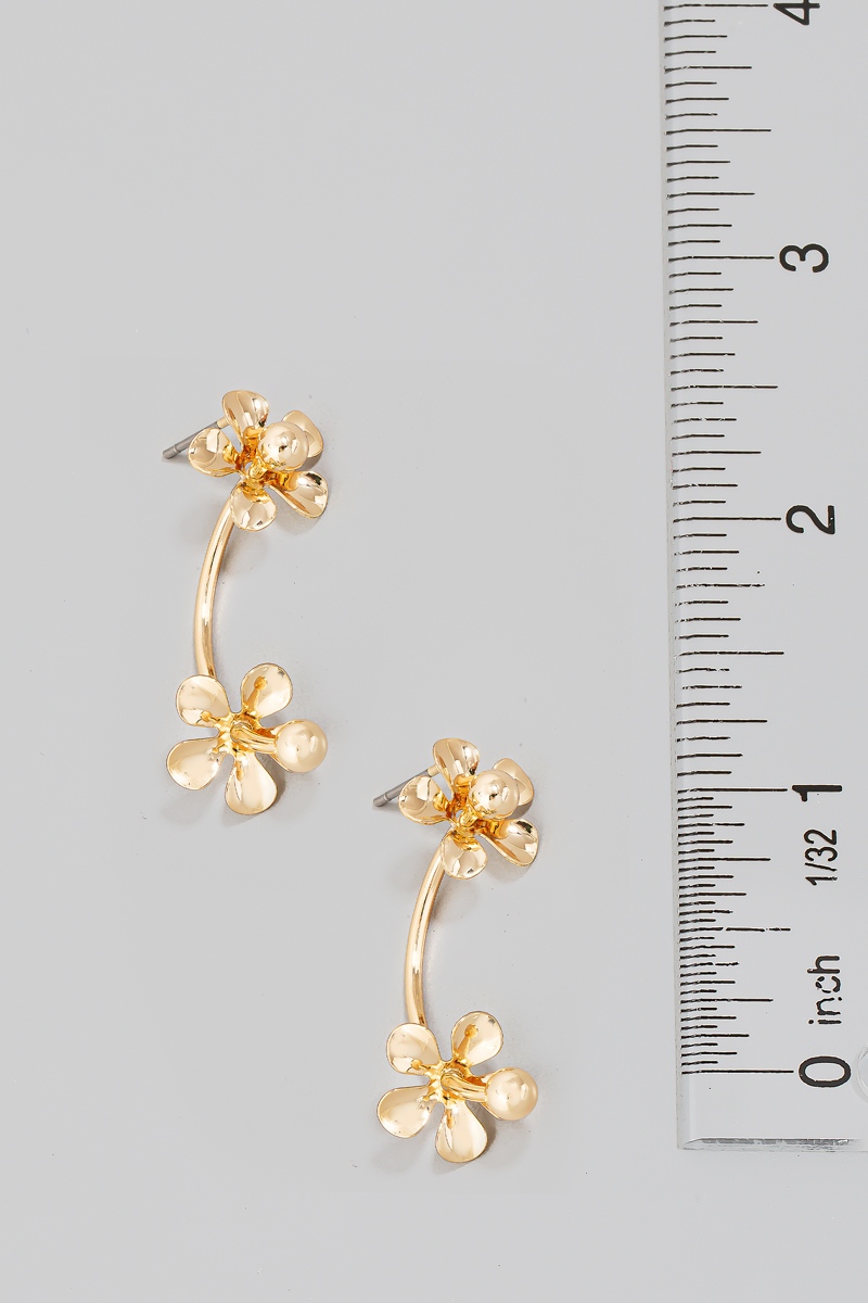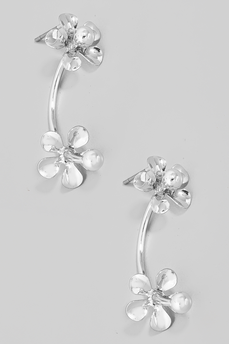 • This pair of dangle earrings showcases a unique double flower bar link stud style. Celebrate individuality with this accessory that effortlessly expresses your unique sense of style.