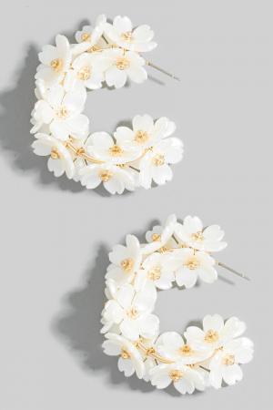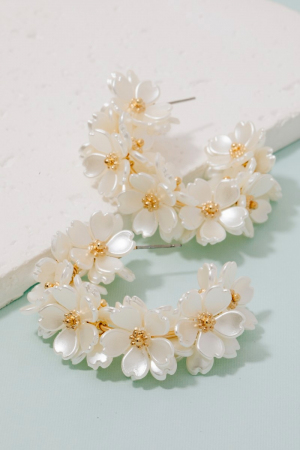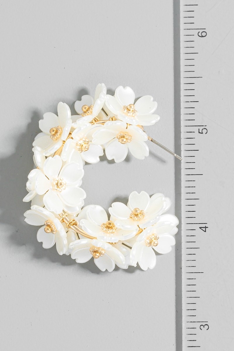 - This pair of hoop earrings displays a fashionable floral acrylic cluster style. Celebrate the art of accessorizing with this piece that effortlessly encapsulates modern trends.