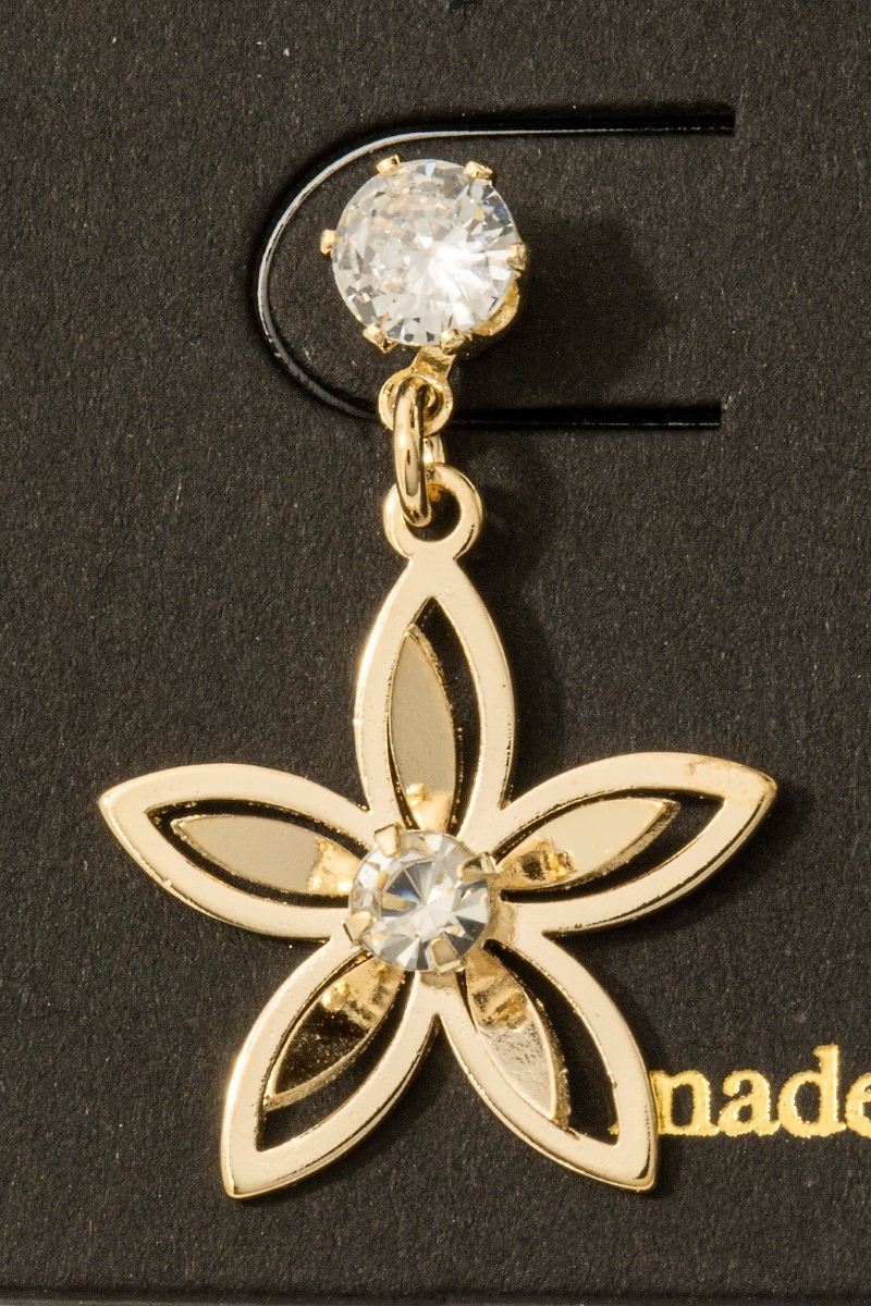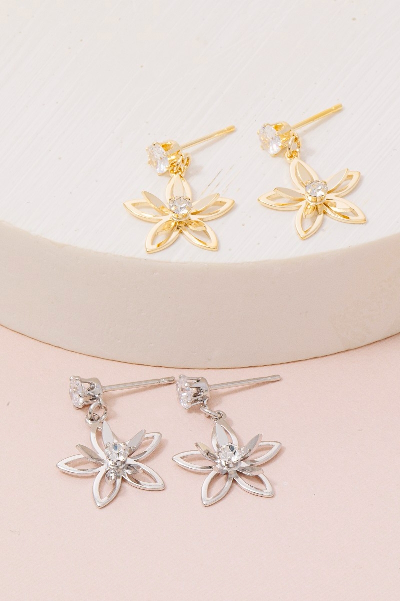 Faceted Tear Gem And Flower Stud Dangle Earrings