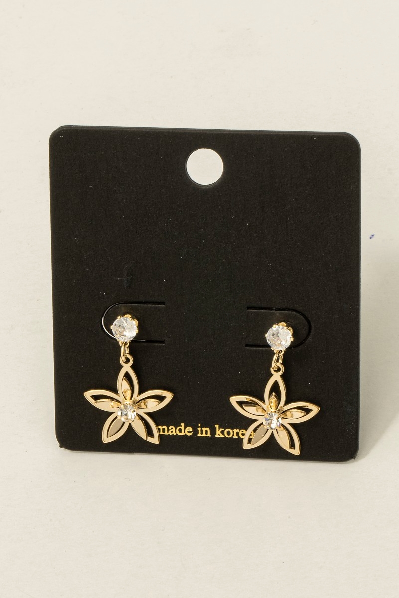 • This pair of earrings displays a vibrant flower drop cubic zirconia style. Explore a refined sense of style with this pair of earrings, seamlessly elevating the chic factor of your look.