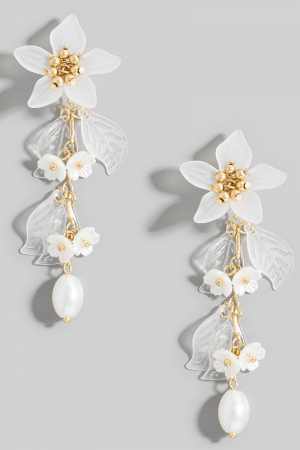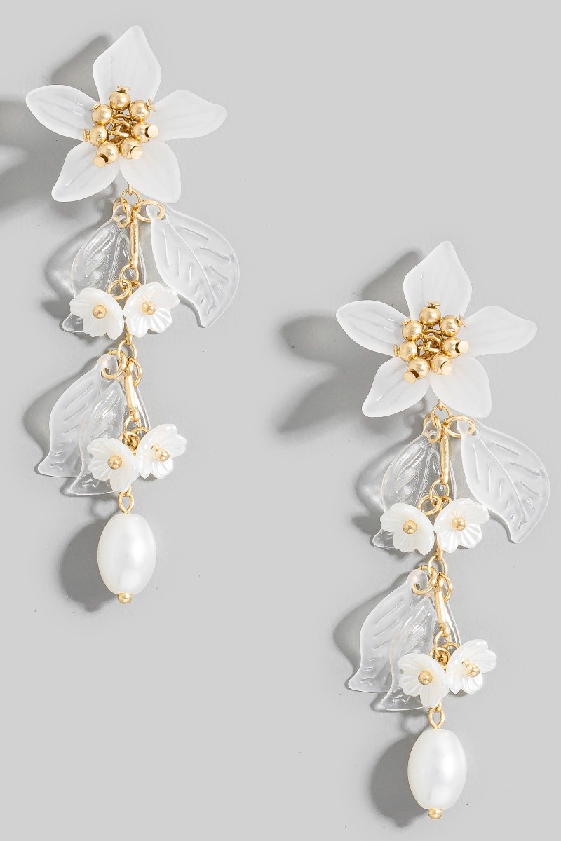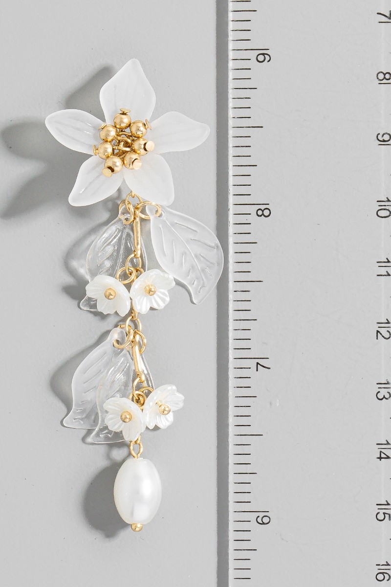 • This pair of dangle earrings showcases a unique flower and pearls long chain style. Redefine your look effortlessly with this standout, on-trend piece.