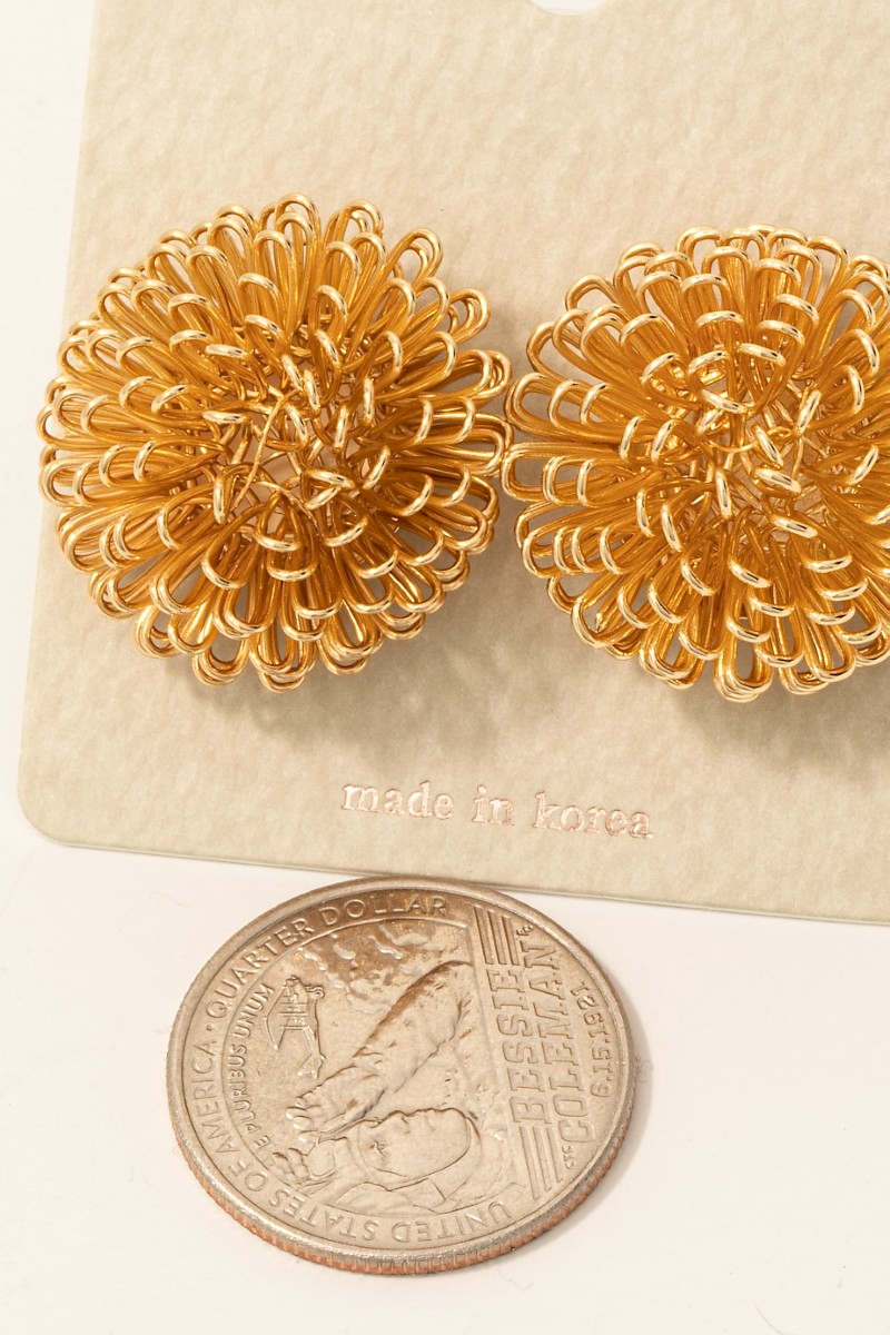 • This pair of stud earrings adds a modern intricate metallic wire flower style. Elevate your ensemble with this chic, timeless pair of stud earrings.