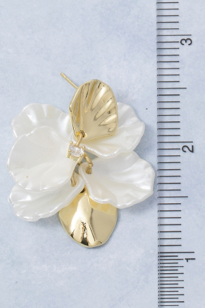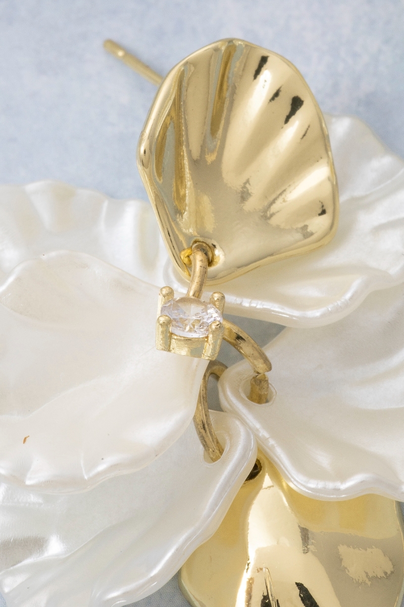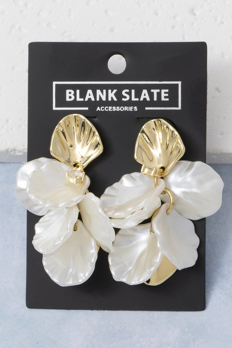 - This pair of dangle earrings brings a unique metallic and acrylic petals style. Immerse yourself in fashion finesse with this statement pair of dangle earrings.