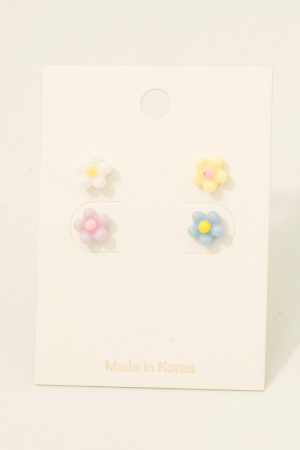 • This pair of stud earrings introduces a stunning multi colored acrylic flower set style. Celebrate the art of accessorizing with this piece that effortlessly encapsulates modern trends.