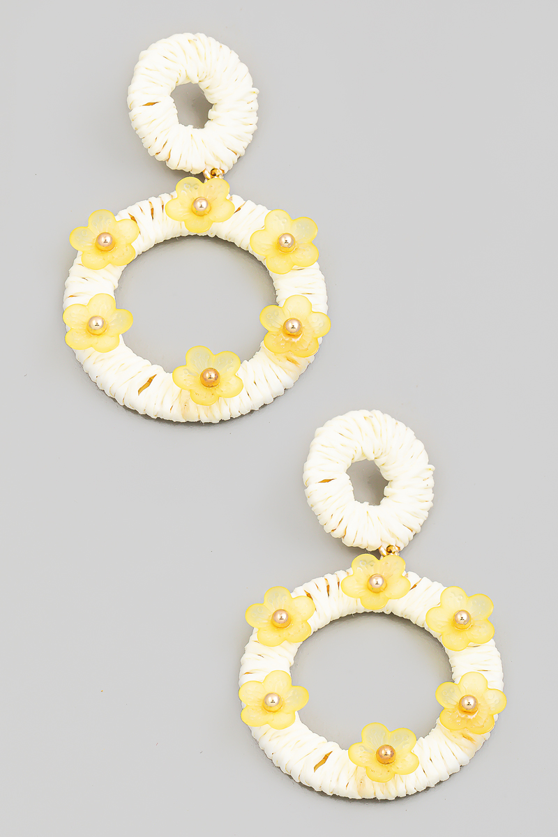 • This pair of dangle earrings brings a luxurious paper wrap hoop drop flower stud earrings style. Celebrate individual style with this versatile, eye-catching addition.