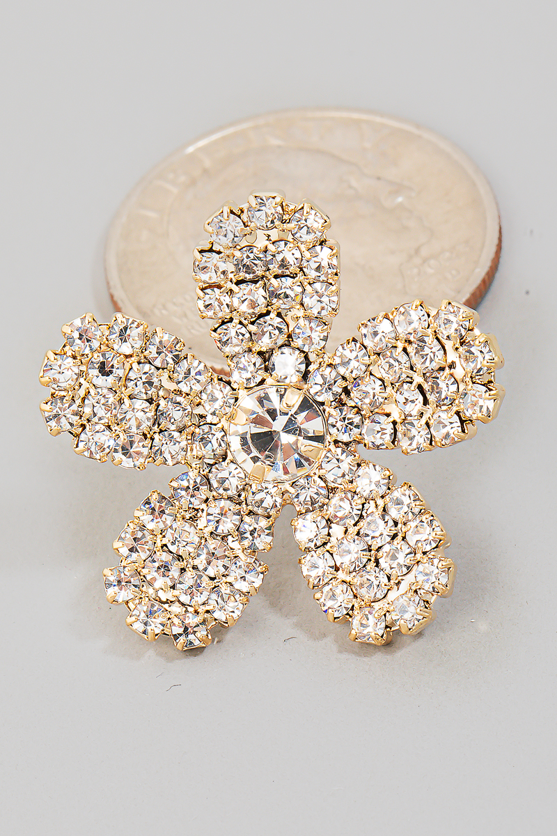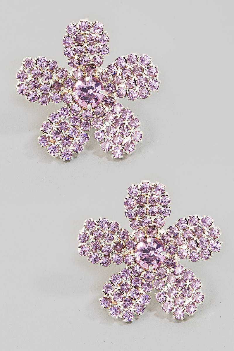 • This pair of stud earrings brings a luxurious pave 5 petal flower style. Unveil a new dimension of sophistication as this accessory effortlessly enhances the elegance of your ensemble.