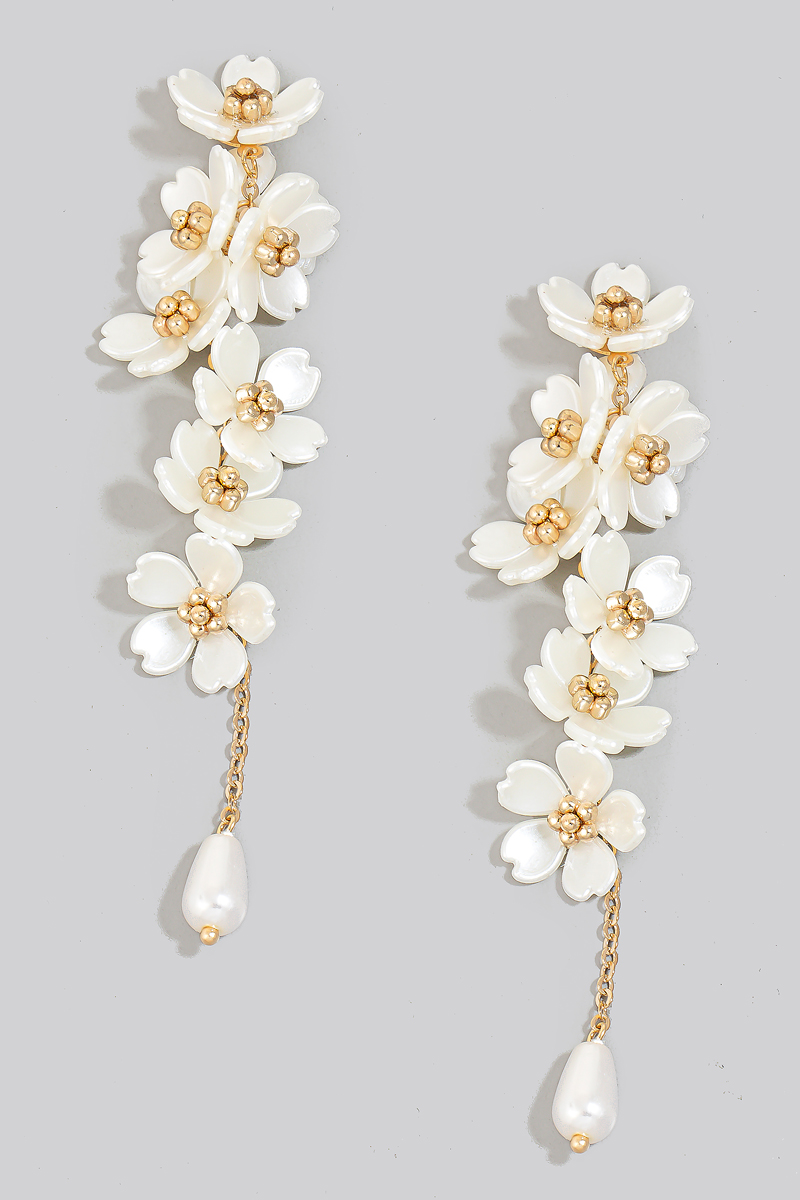 • This pair of dangle earrings introduces a stunning pearl flower charm chains and bead style. Savor the allure of detailed craftsmanship in this exquisite pair of dangle earrings.