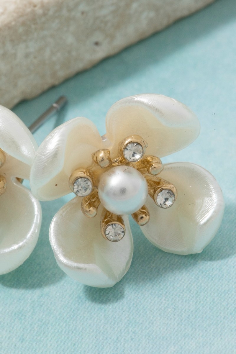 - This pair of earrings brings a stunning pearl flower set style. Embark on a journey of sartorial refinement as this pair of earrings effortlessly complements your fashion sense.