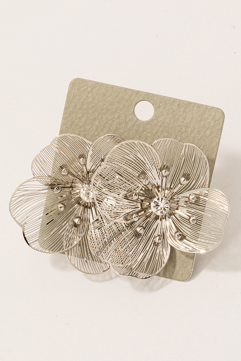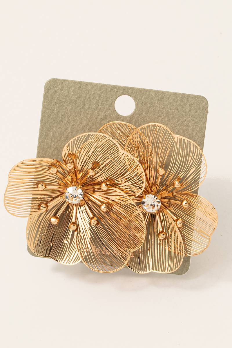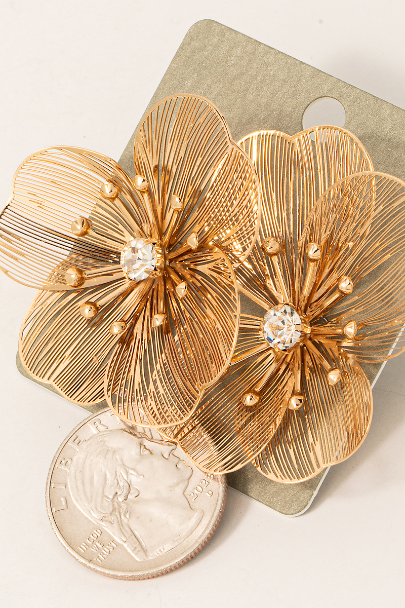 • This pair of stud earrings brings a unique thin metallic filigree flower style. Immerse yourself in the details of design, as this pair of stud earrings effortlessly becomes a conversation starter.