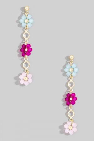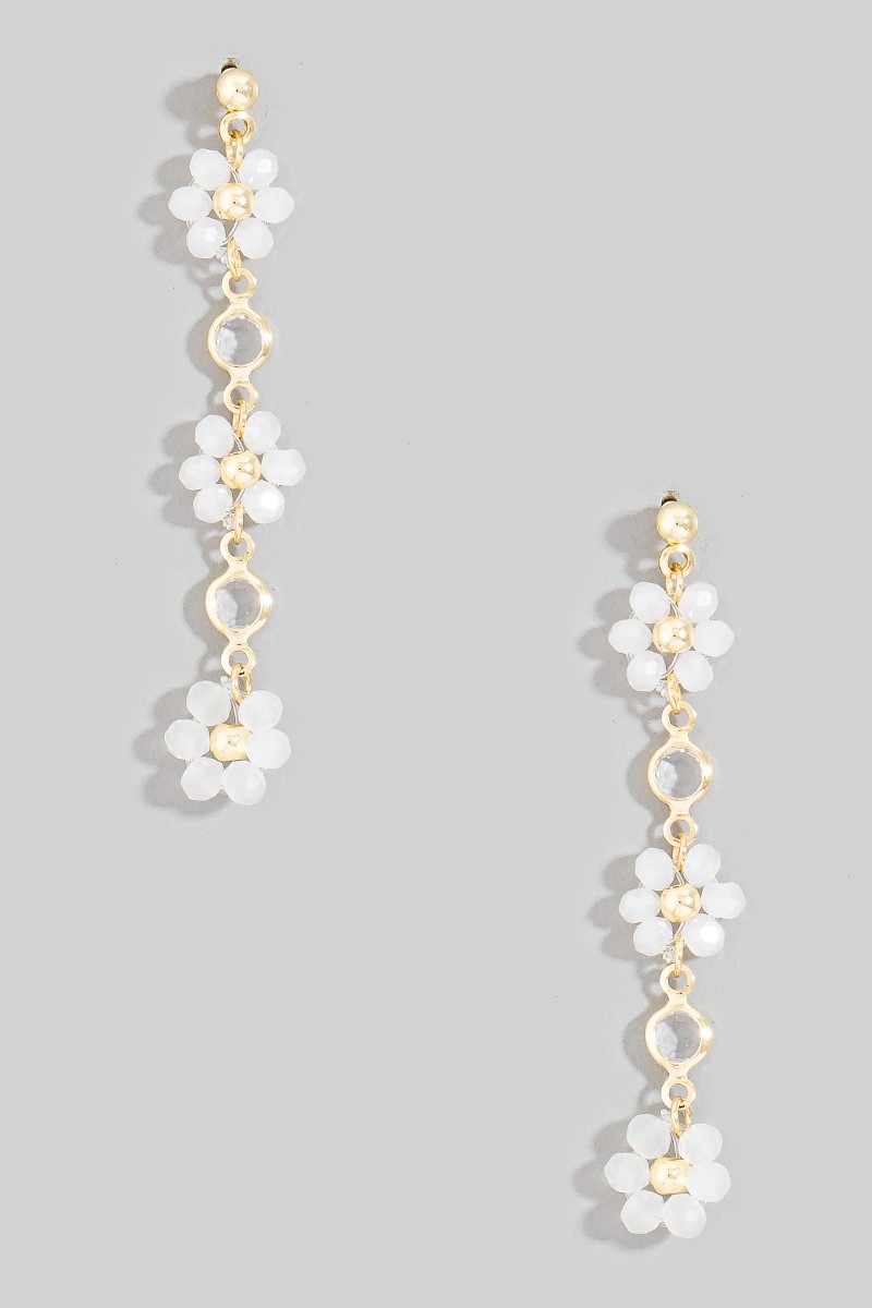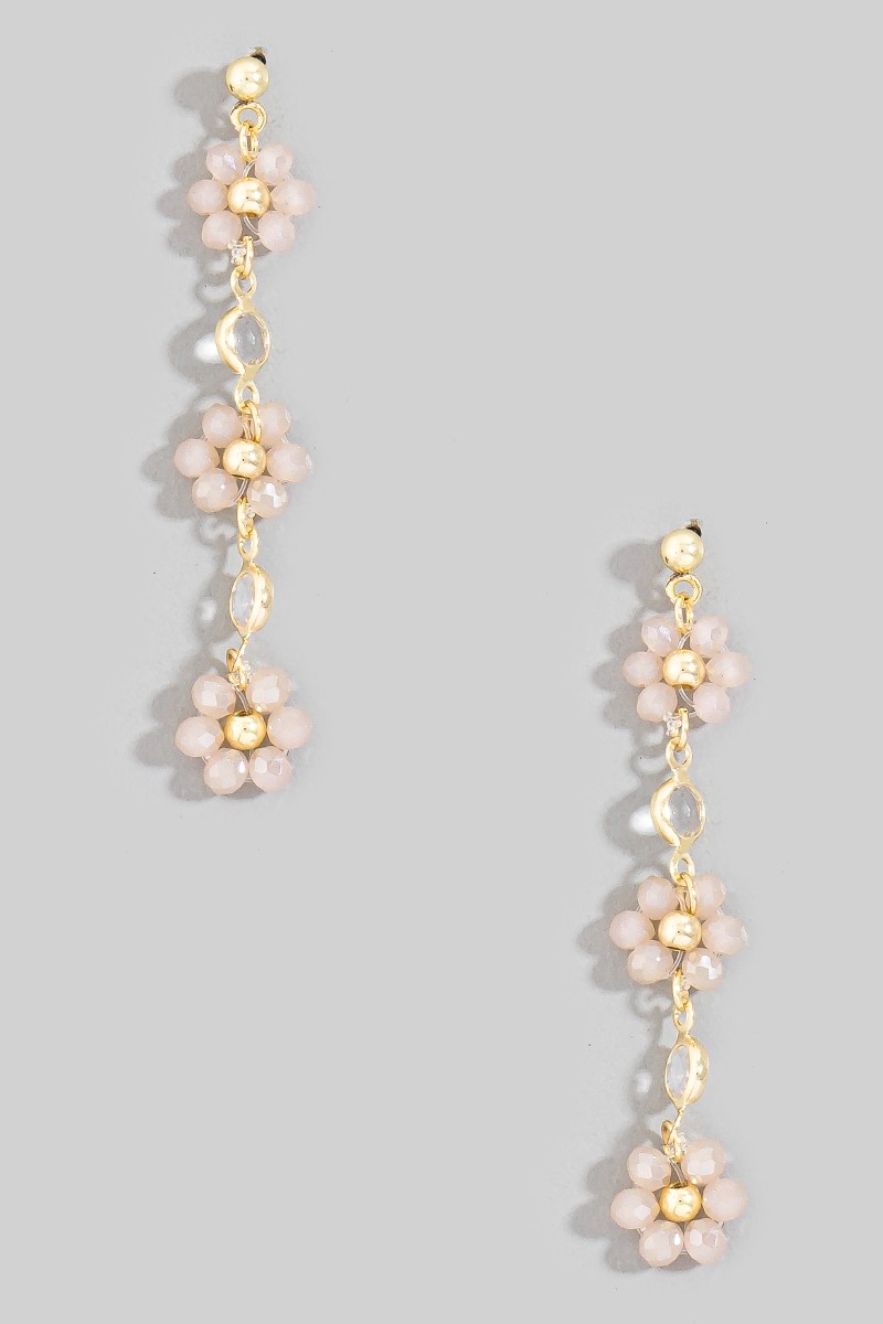 - This pair of dangle earrings showcases a timeless faceted beaded flower chain style. Redefine your look effortlessly with this standout, on-trend piece.