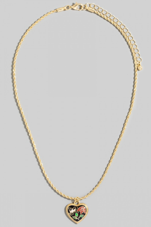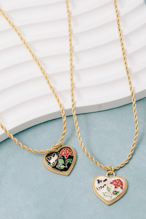 • This chain necklace showcases a timeless floral enamel heart pendant rope style. Delight in the intricate details that make this chain necklace an essential element in expressing your fashion identity.