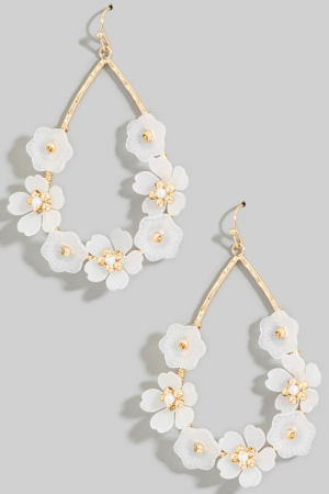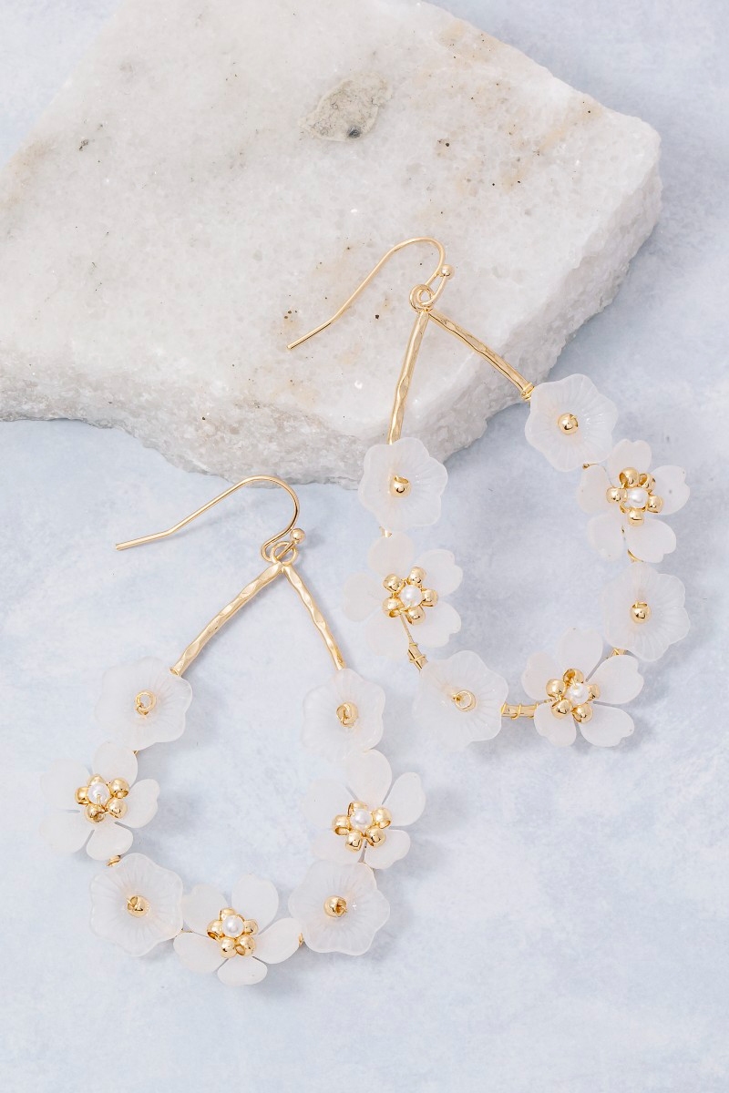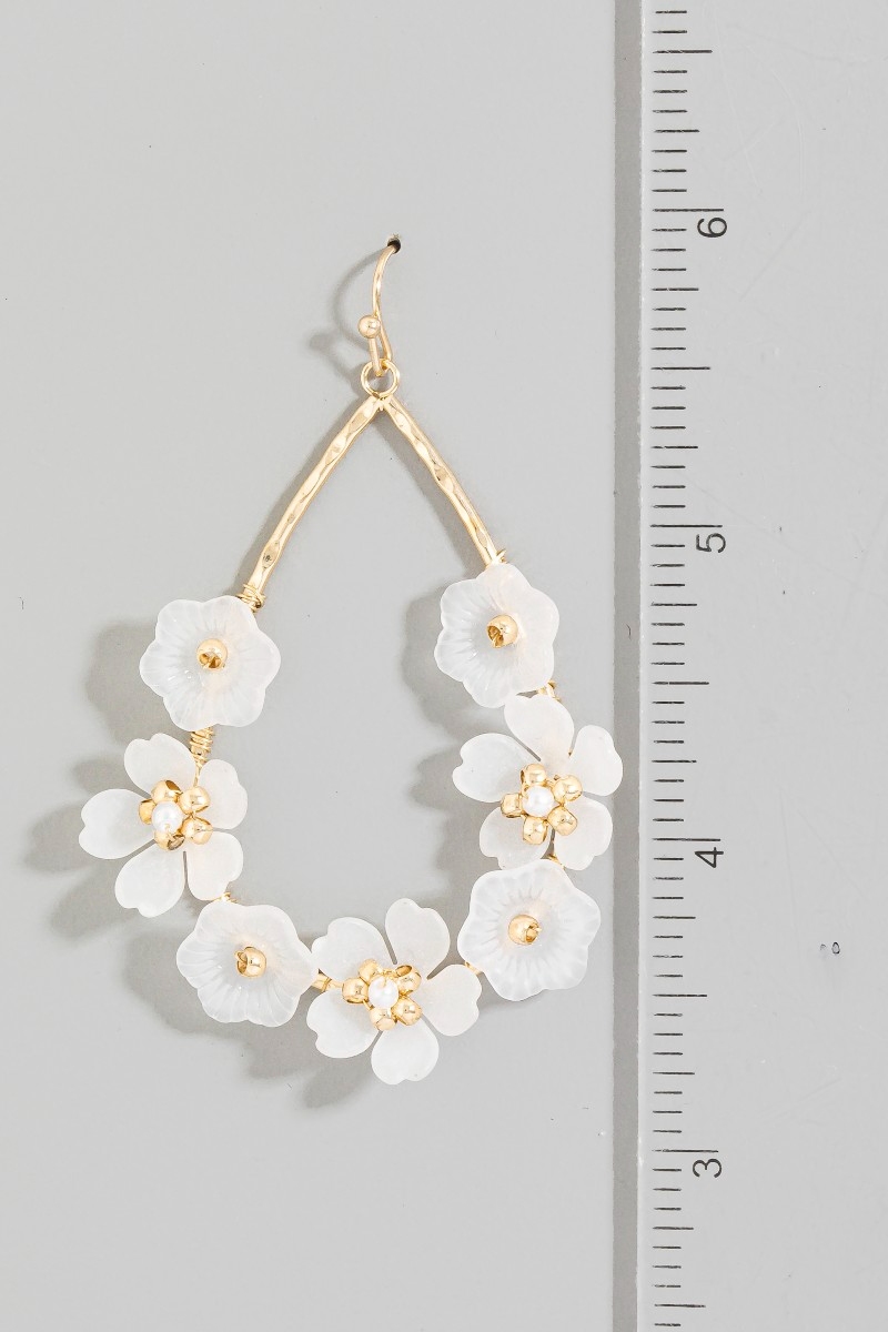 - This pair of dangle earrings introduces a unique frosted flowers and pearl bead teardrop style. Experience the joy of accessorizing with this piece that effortlessly combines versatility and charm.