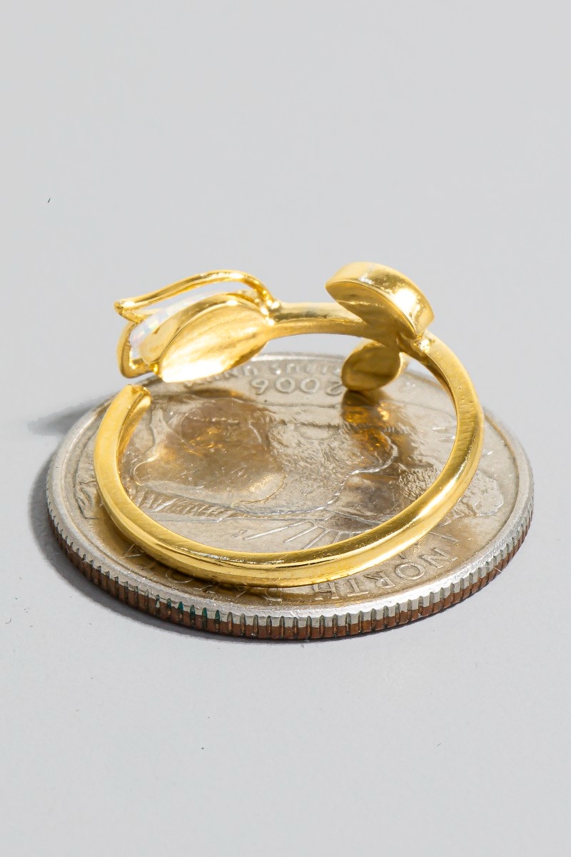 - This ring brings a stunning gold dipped opal rose wrap open band style. Embark on a journey of sartorial refinement as this ring effortlessly complements your fashion sense.