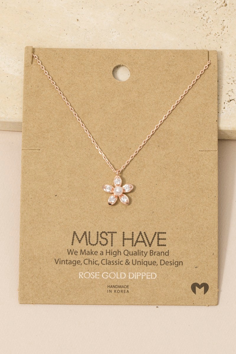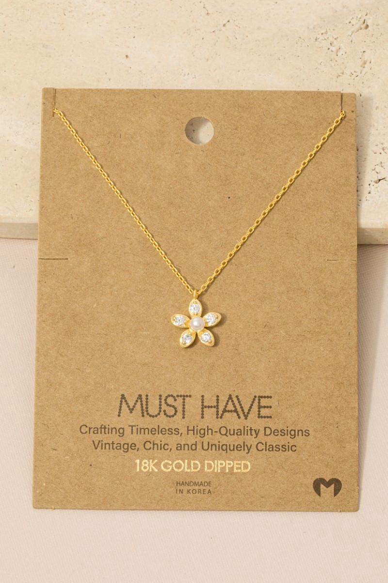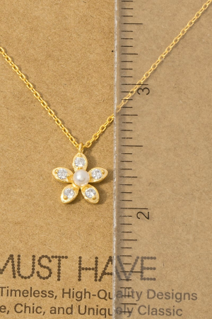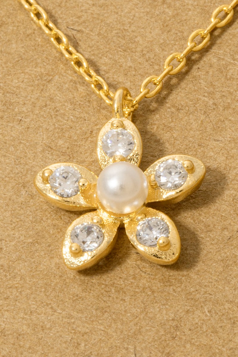 • This pendant necklace brings a stunning gold dipped pearl and cubic zirconia flower style. Step into a world of refined taste as this pendant necklace effortlessly refines the details of your outfit.