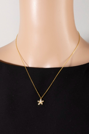 Gold Dipped Cz Stud Flower Pendant Necklace
