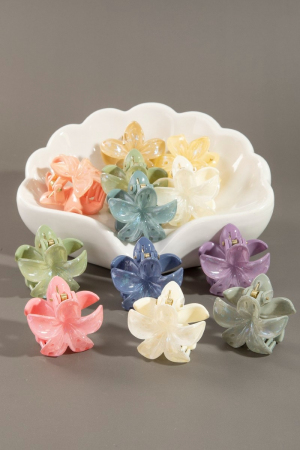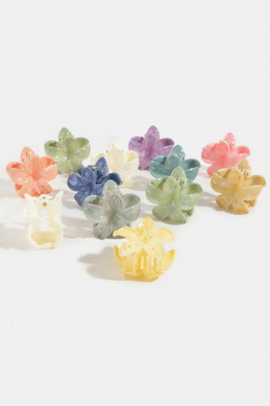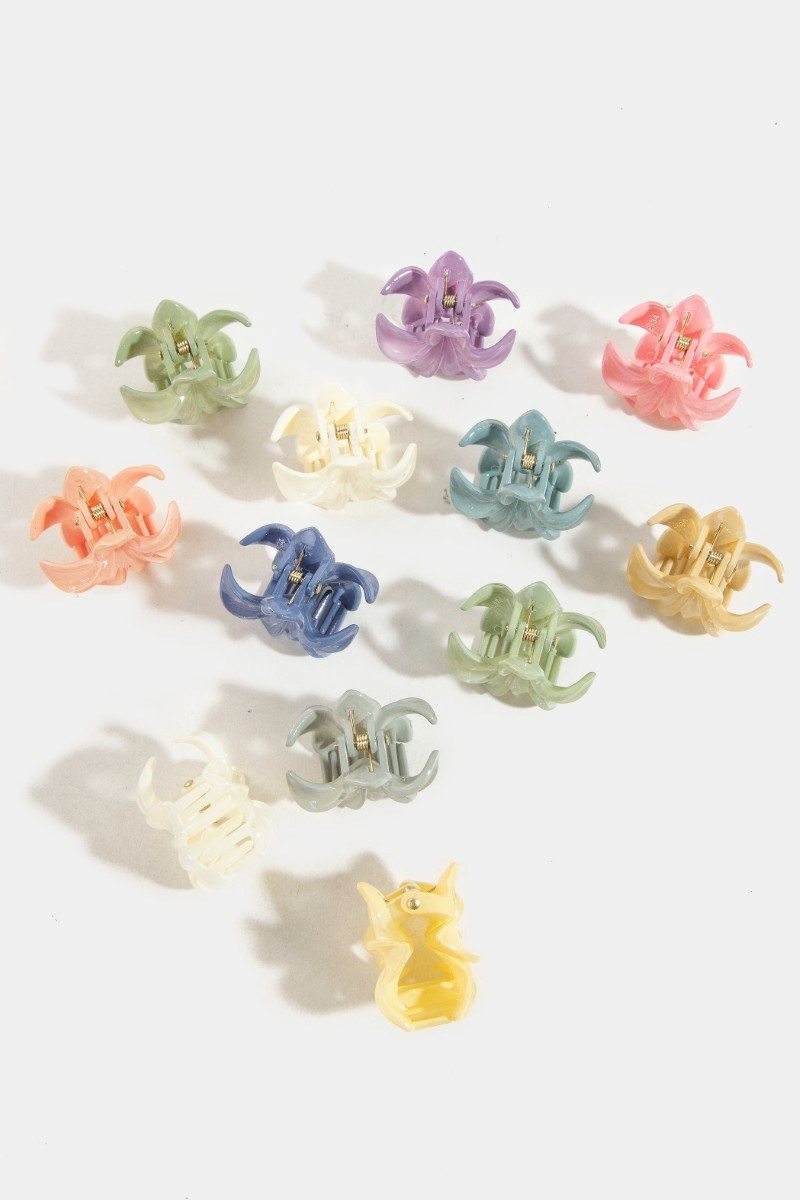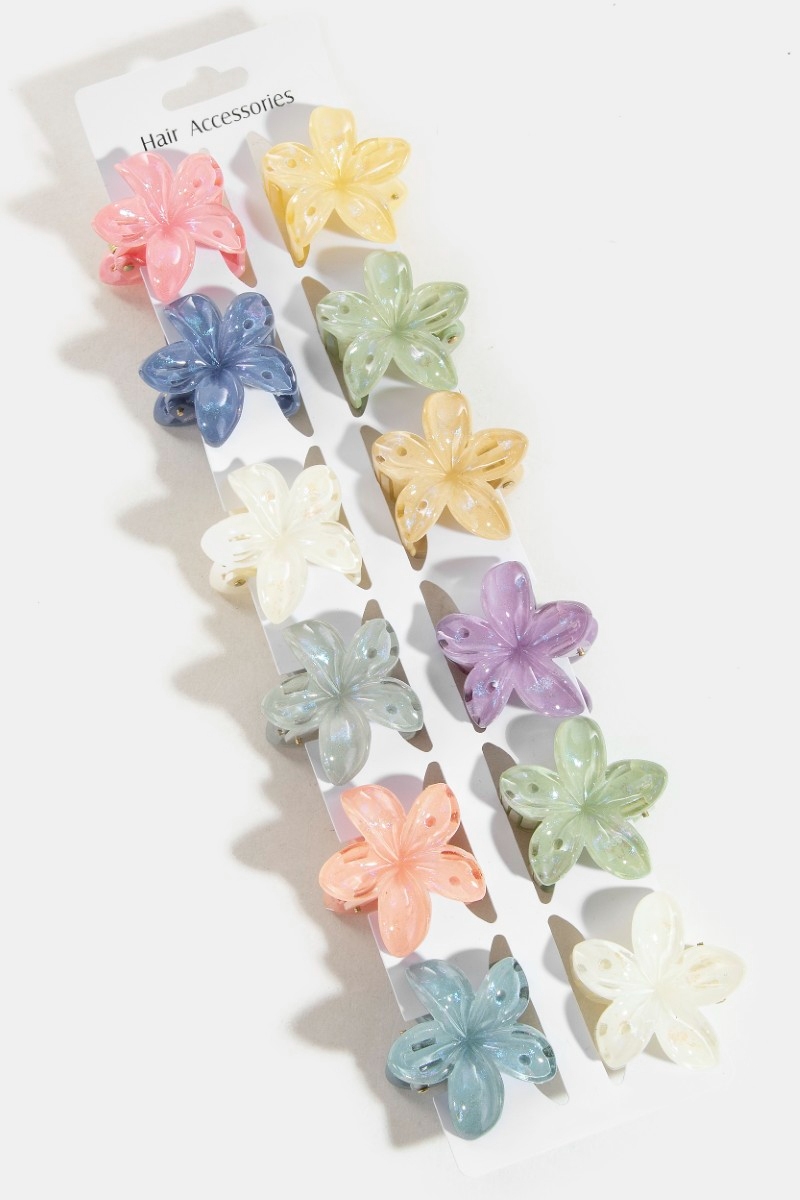 - This introduces a unique 12pc mixed vibrant iridescent flower hair claw set style. Elevate your ensemble with this that effortlessly captures the essence of refined fashion.