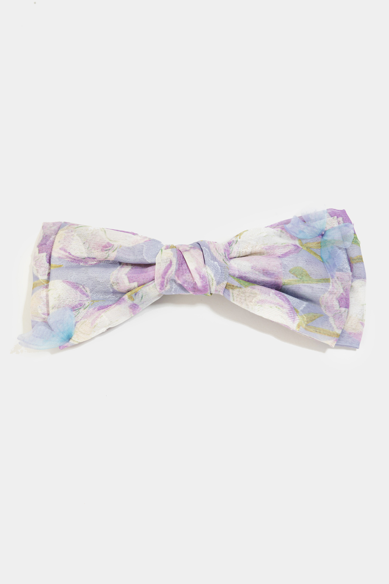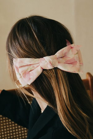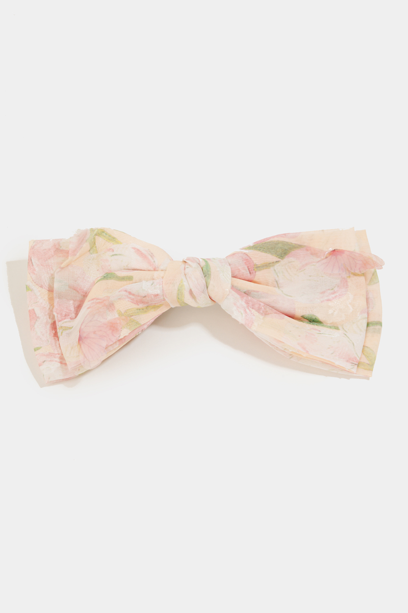 • This hair clip showcases a timeless floral design ribbon bow style. Savor the allure of detailed craftsmanship in this exquisite accessory.