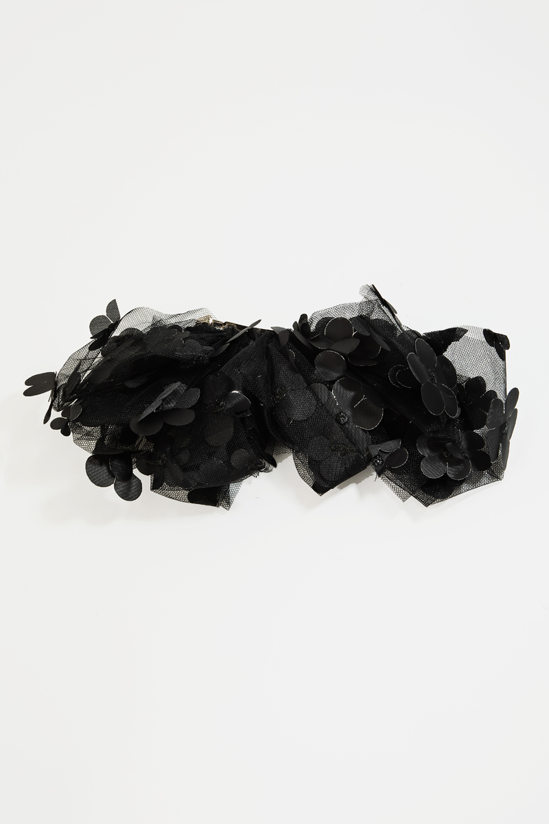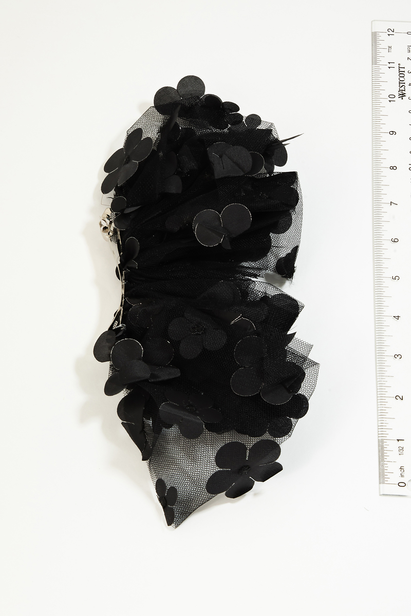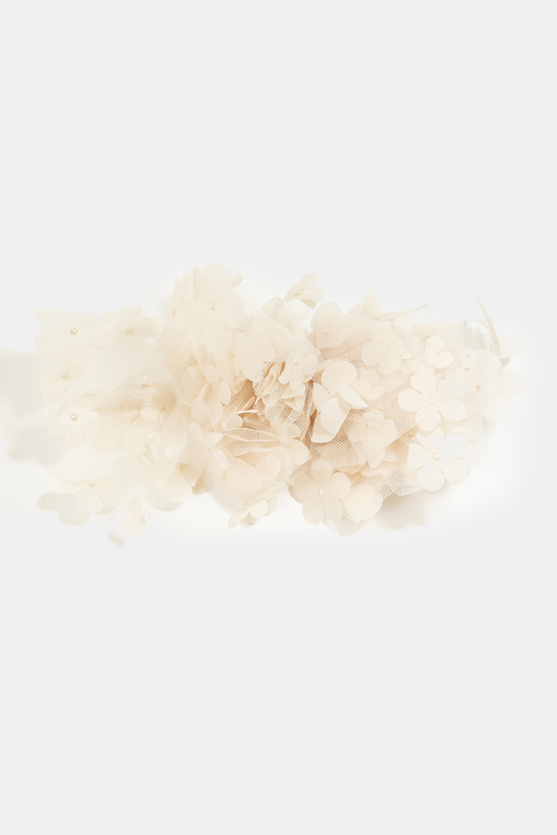 - This hair clip showcases a timeless sheer multi flower ribbon bow style. Unveil modern elegance with this subtly intricate accessory.