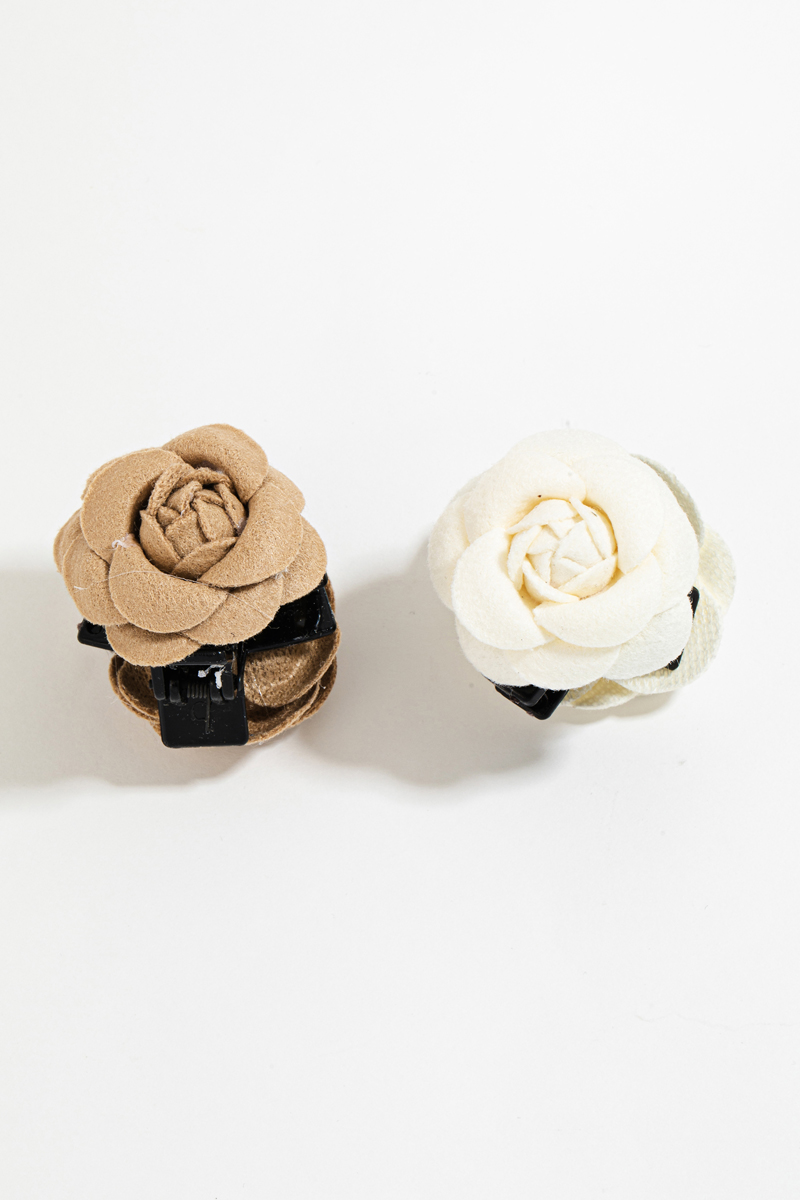 - This hair claw brings a luxurious small felt flower rose set style. Discover the perfect balance of subtlety and flair as this hair claw effortlessly completes your look.